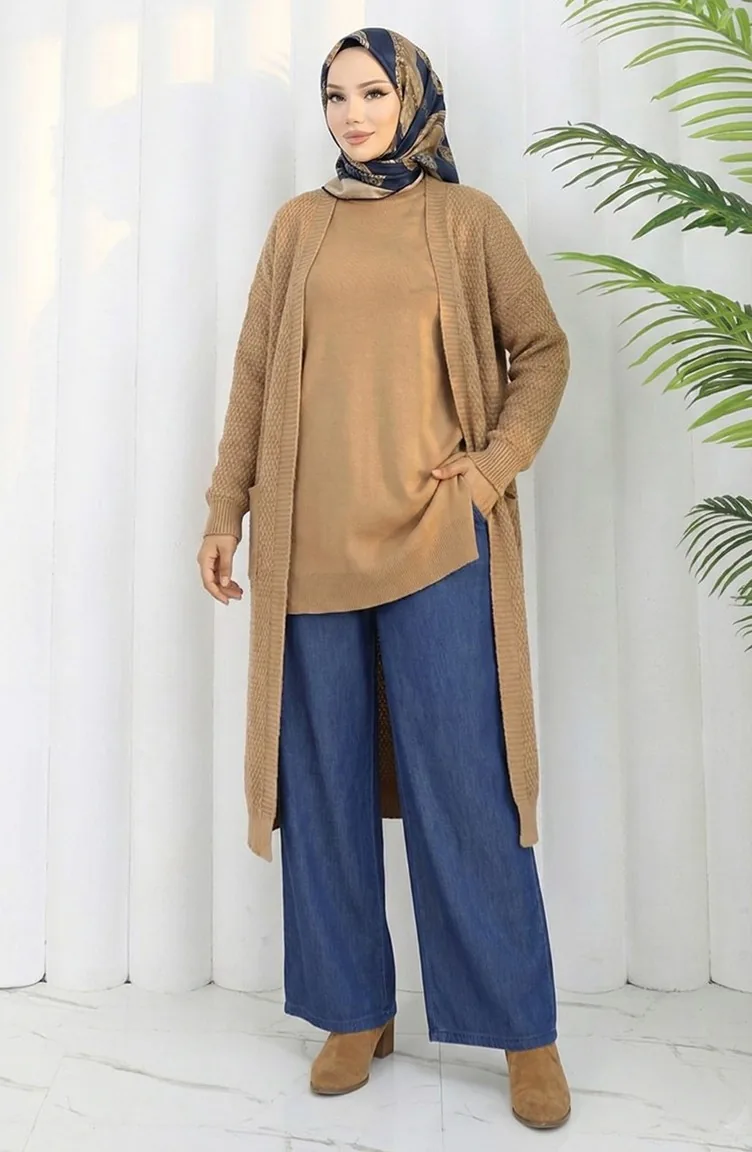 Dark Navy Blue color is used. It has a plain appearance. The product was made easier to use by using rubber. Suitable for 4 seasons. Plus size option available.