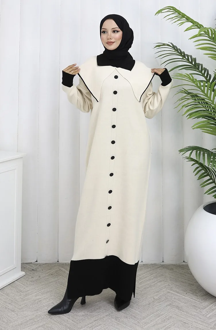 Knitwear Button-Down Collar Detailed Dress 0513-06 Beige 0513-06