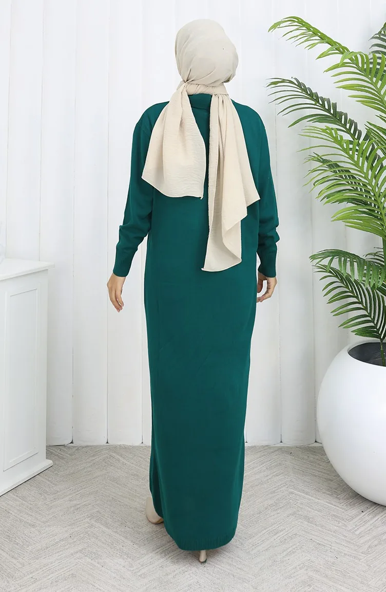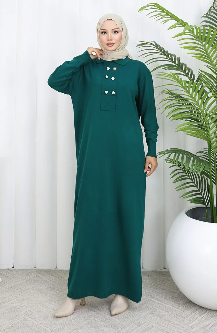 Knitwear Polo Collar Button Detailed Dress 0007-03 Petrol 0007-03