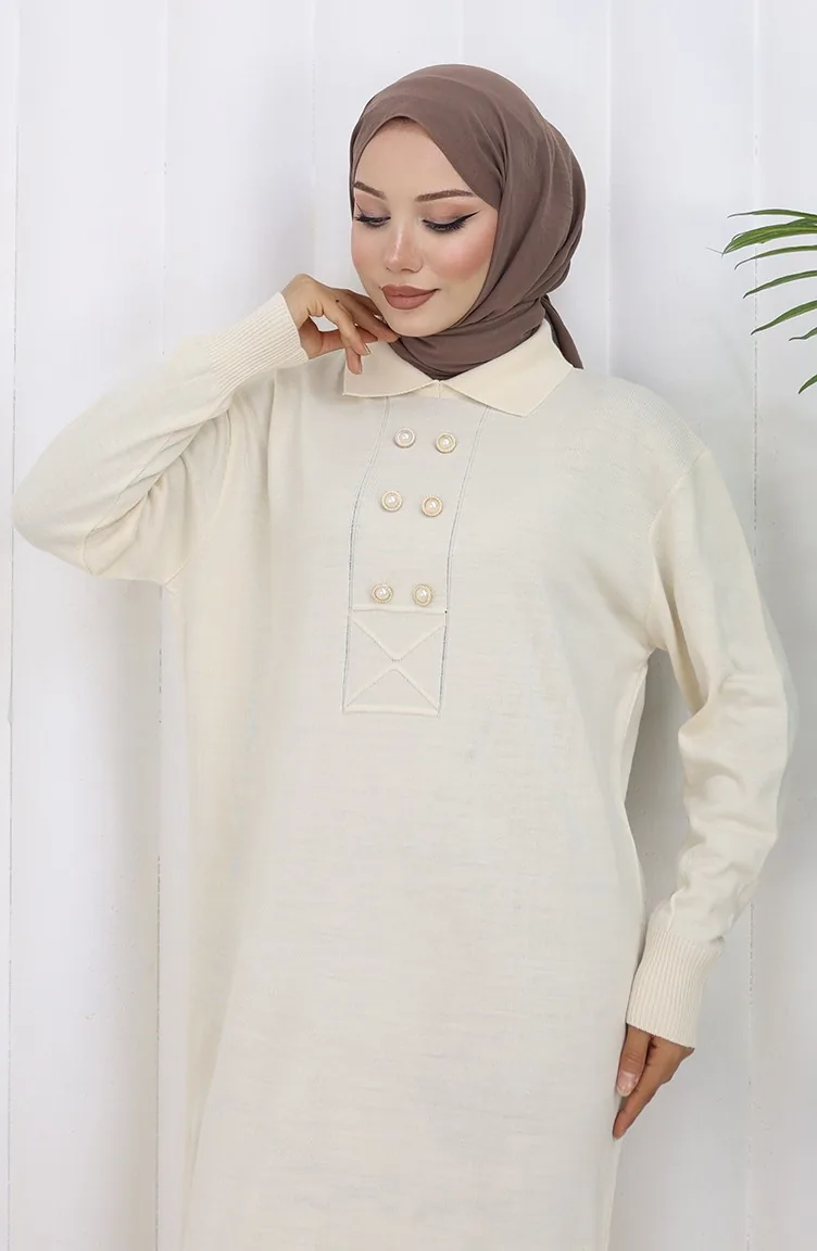Knitwear Polo Collar Button Detailed Dress 0007-05 Beige 0007-05