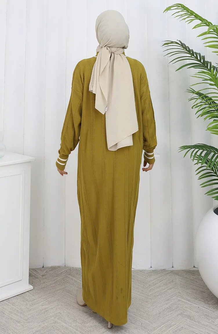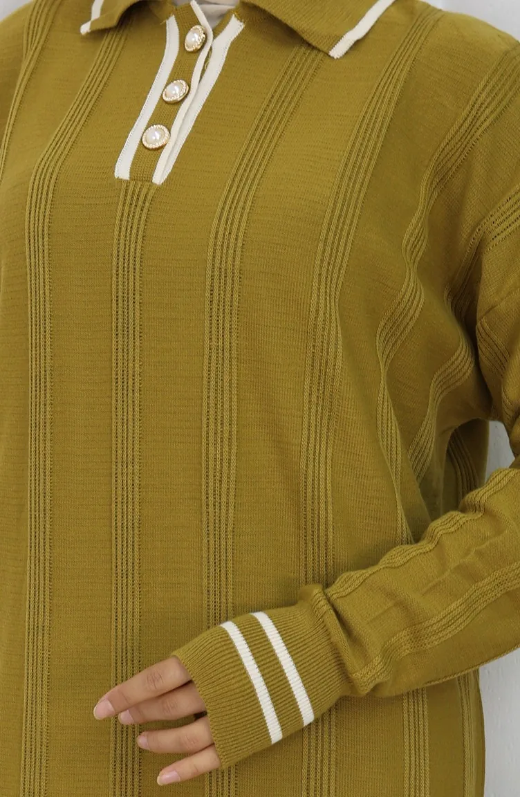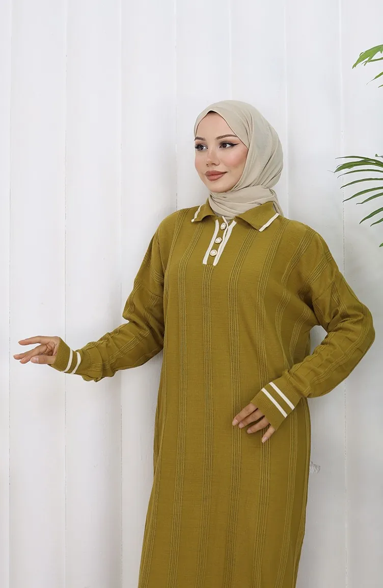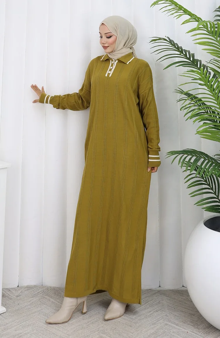 Knitwear Polo Collar Buttoned Dress 1135-01 Oil Green 1135-01