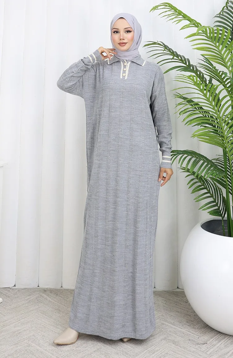 Knitwear Polo Collar Buttoned Dress 1135-05 Gray 1135-05