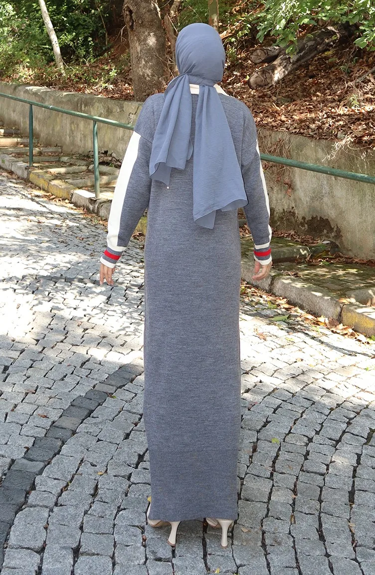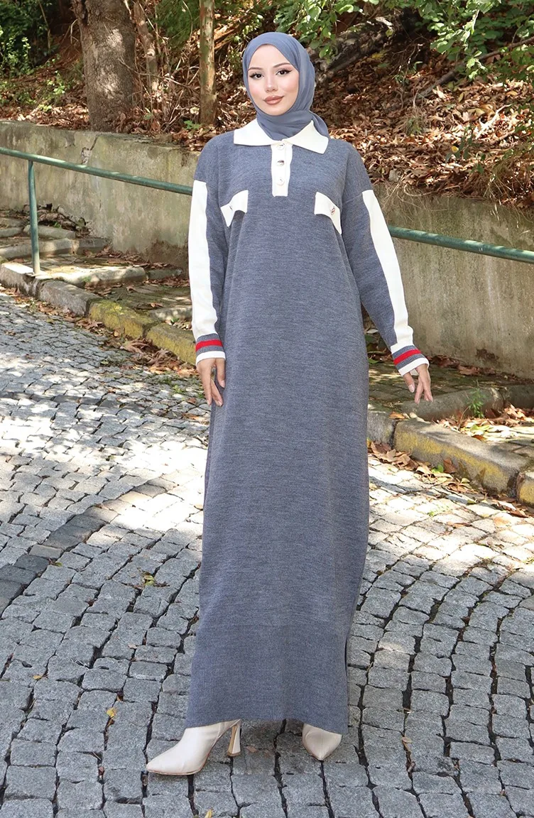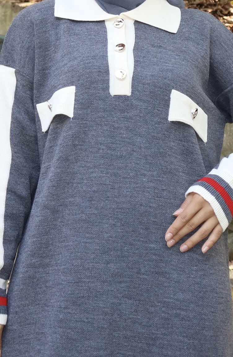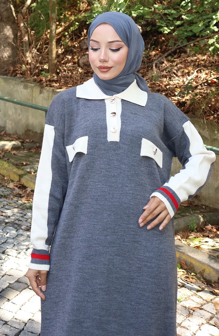 Knitwear Polo Collar Pocket Detailed Dress 0507-04 Gray 0507-04