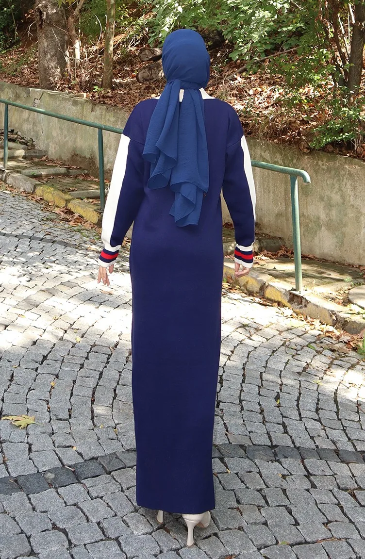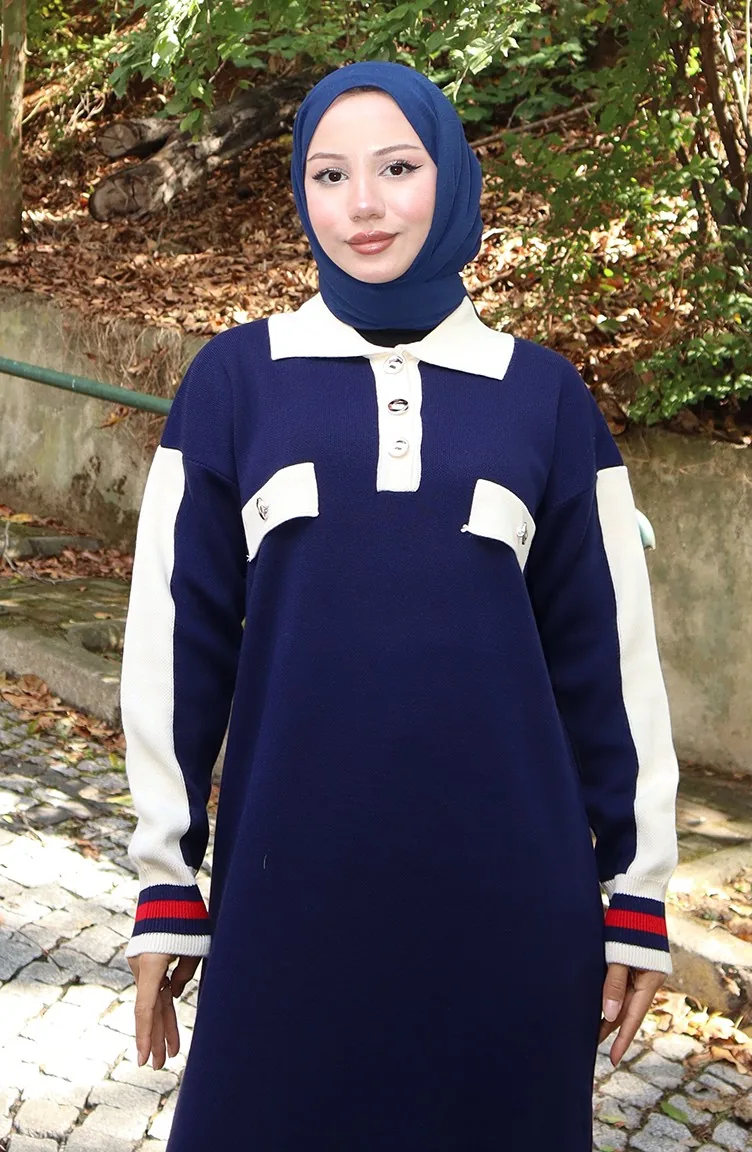 Knitwear Polo Collar Pocket Detailed Dress 0507-05 Navy Blue 0507-05