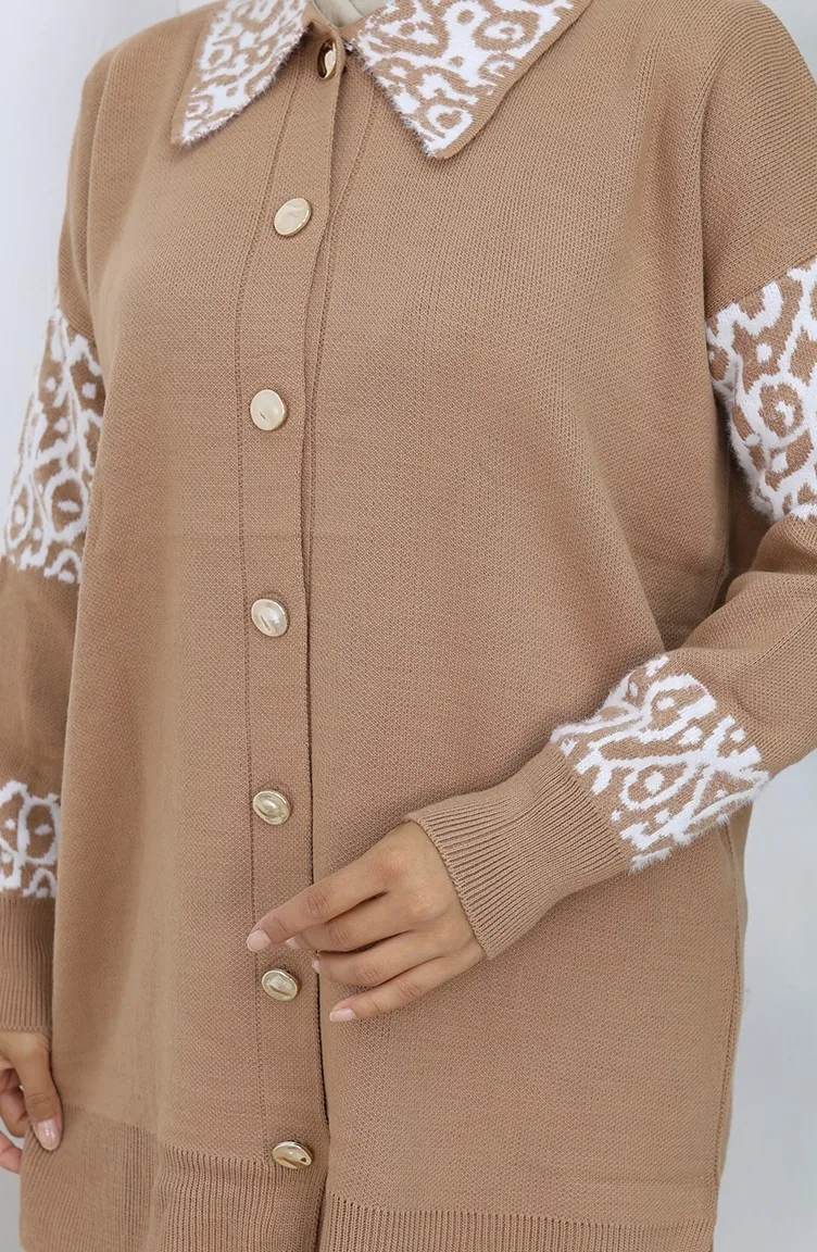 Knitwear Buttoned Garnished Tunic Trousers Two Piece Suit 1020-05 Black Milk Coffee 1020-05
