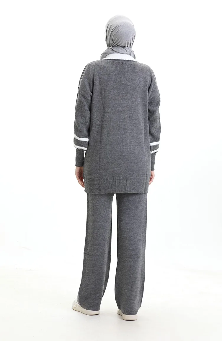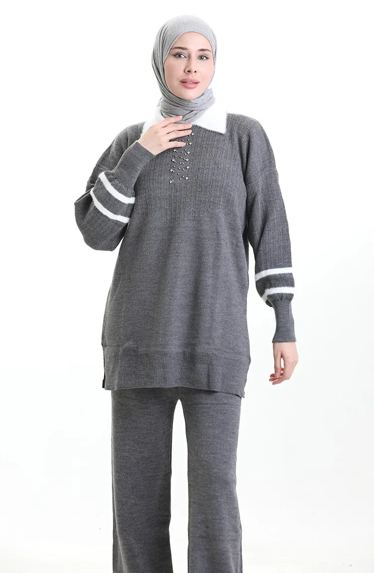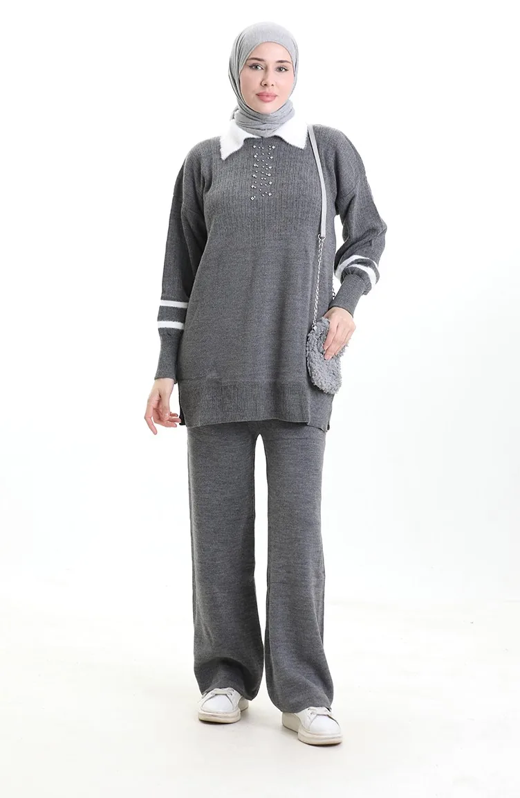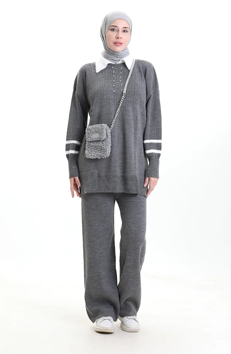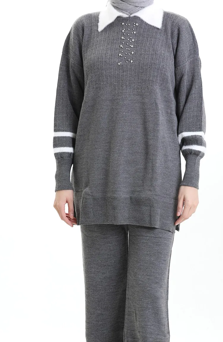 Knitwear Collar Detailed Tunic Trousers Two Piece Set 1002-10 Smoke 1002-10