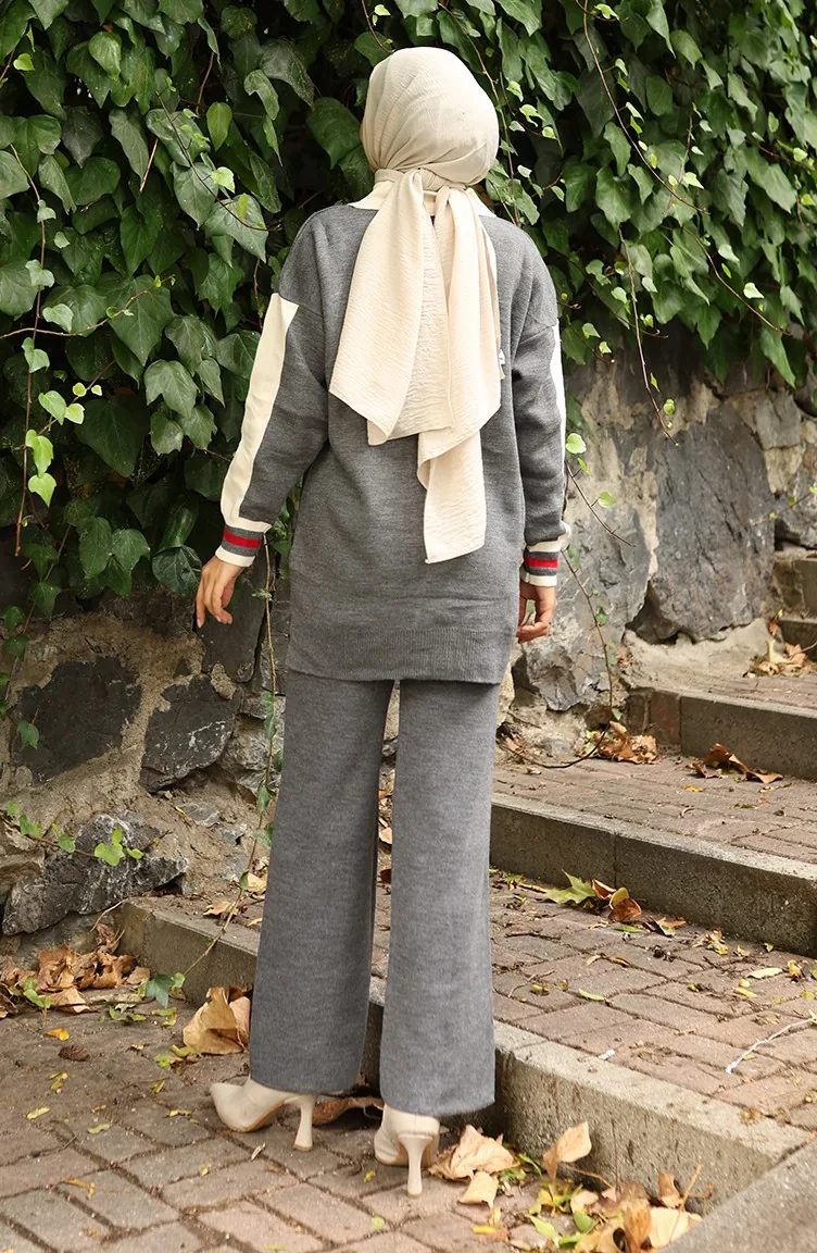 Knitwear Polo Collar Tunic Trousers Two Piece Suit 1048-08 Gray 1048-08