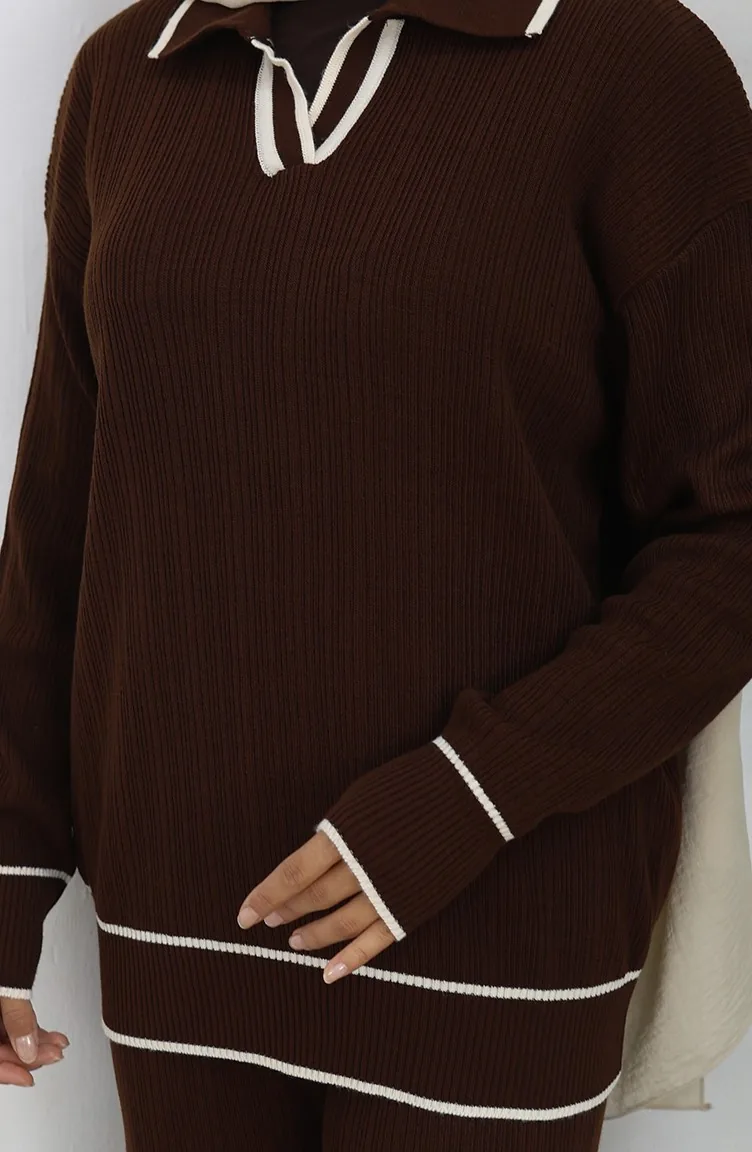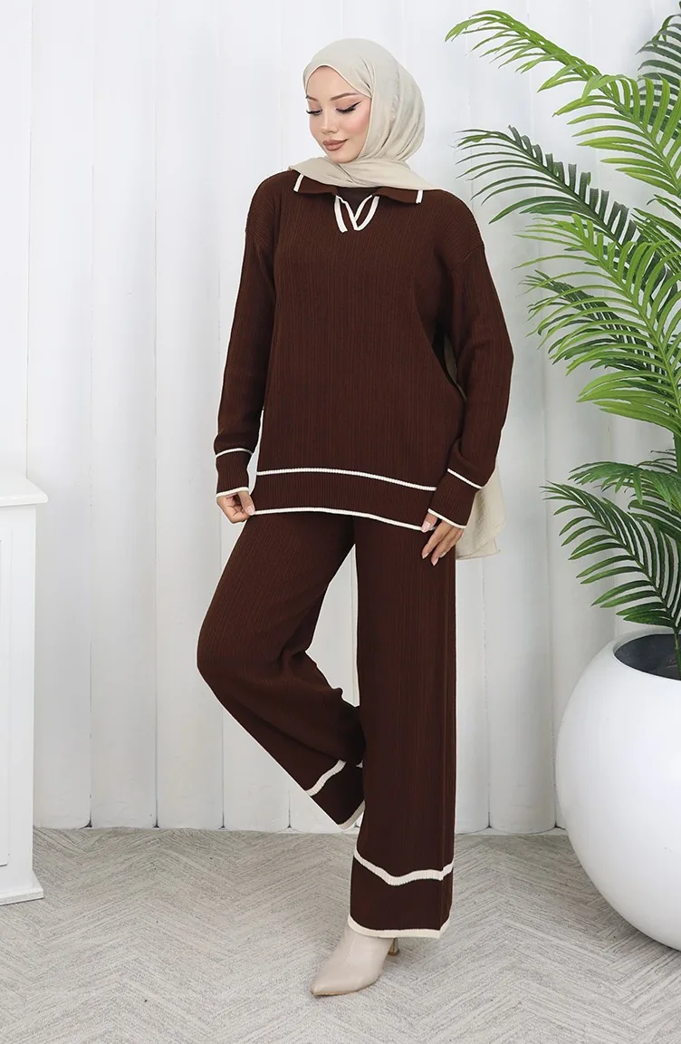 Knitwear Ribbed Sweater Trousers Two Piece Set 0010-06 Brown 0010-06