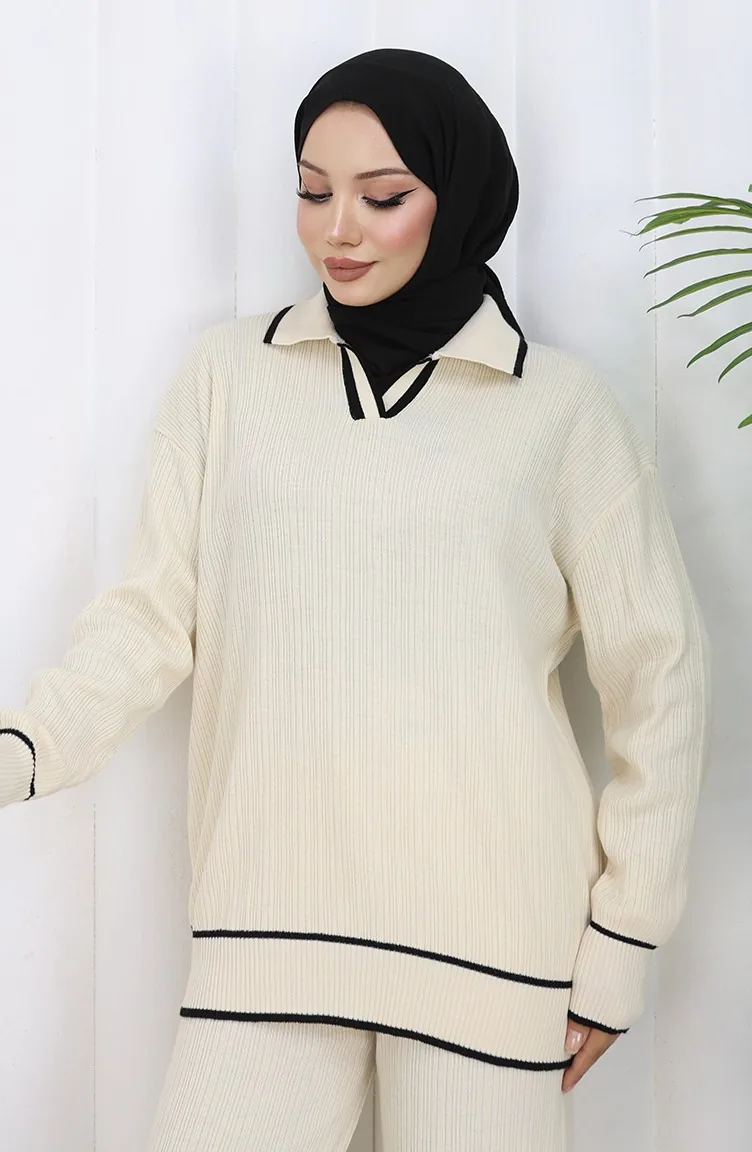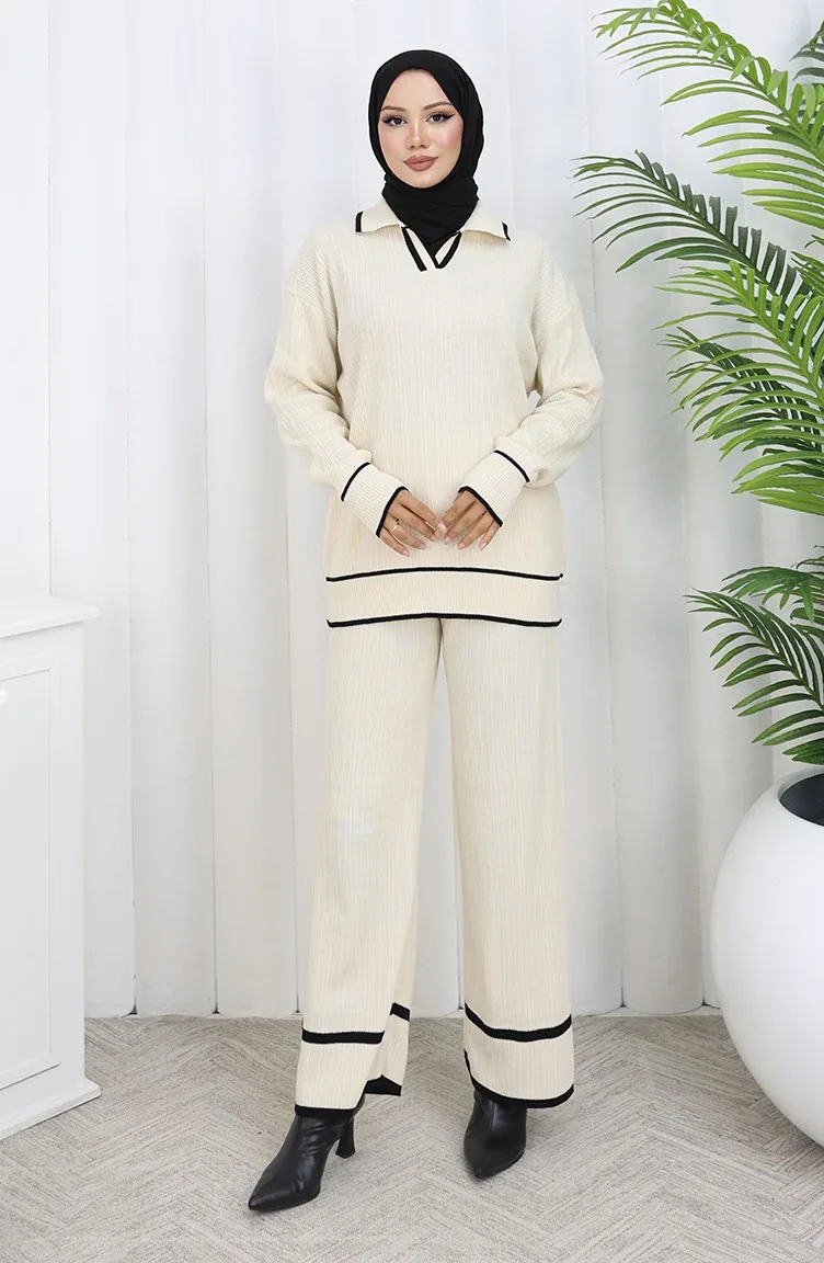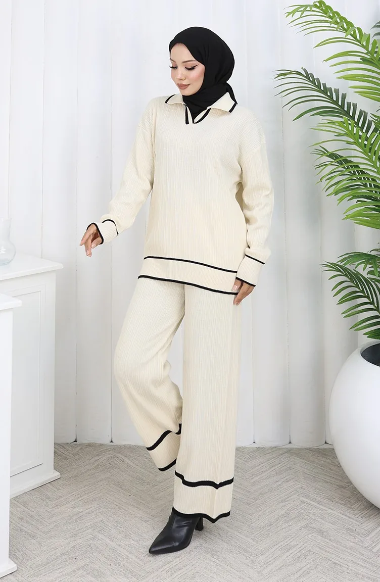 Knitwear Ribbed Sweater Trousers Two Piece Set 0010-07 Beige 0010-07