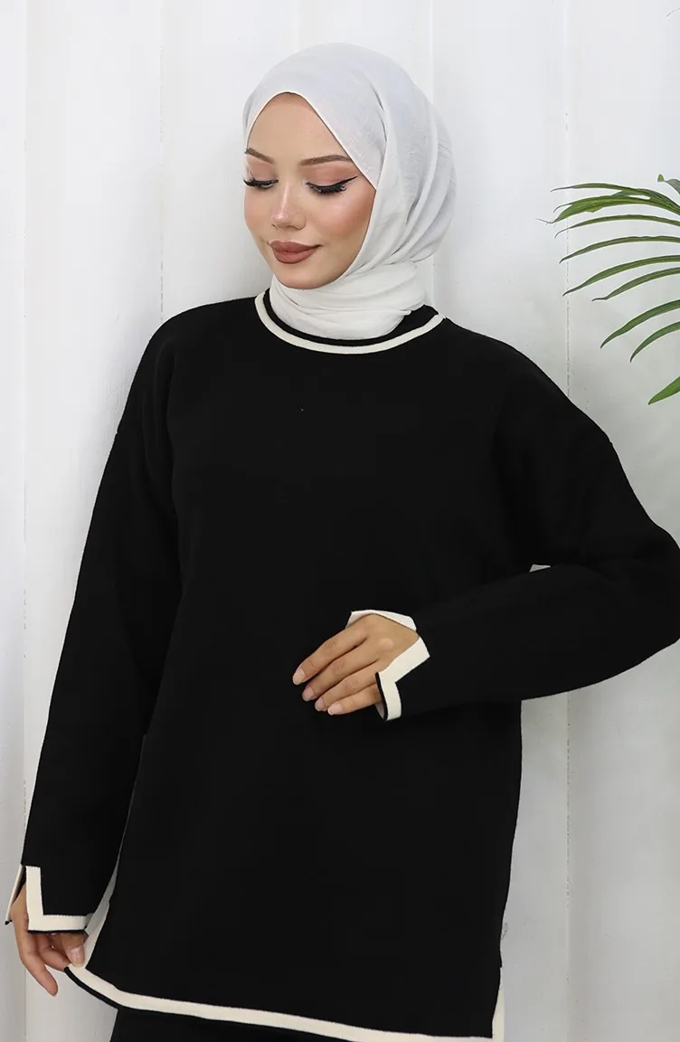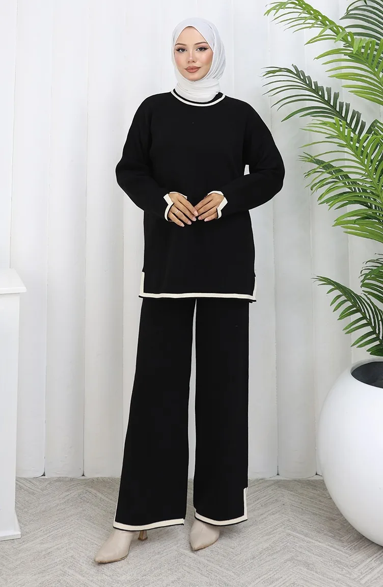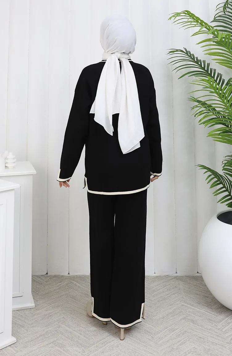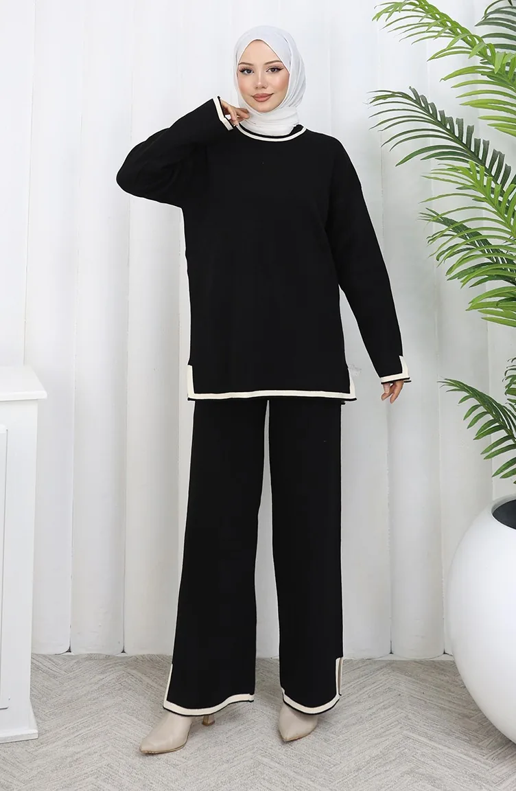 Knitwear Slit Detailed Sweater Trousers Two Piece Set 0011-04 Black 0011-04