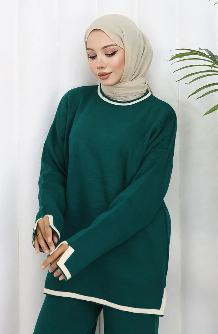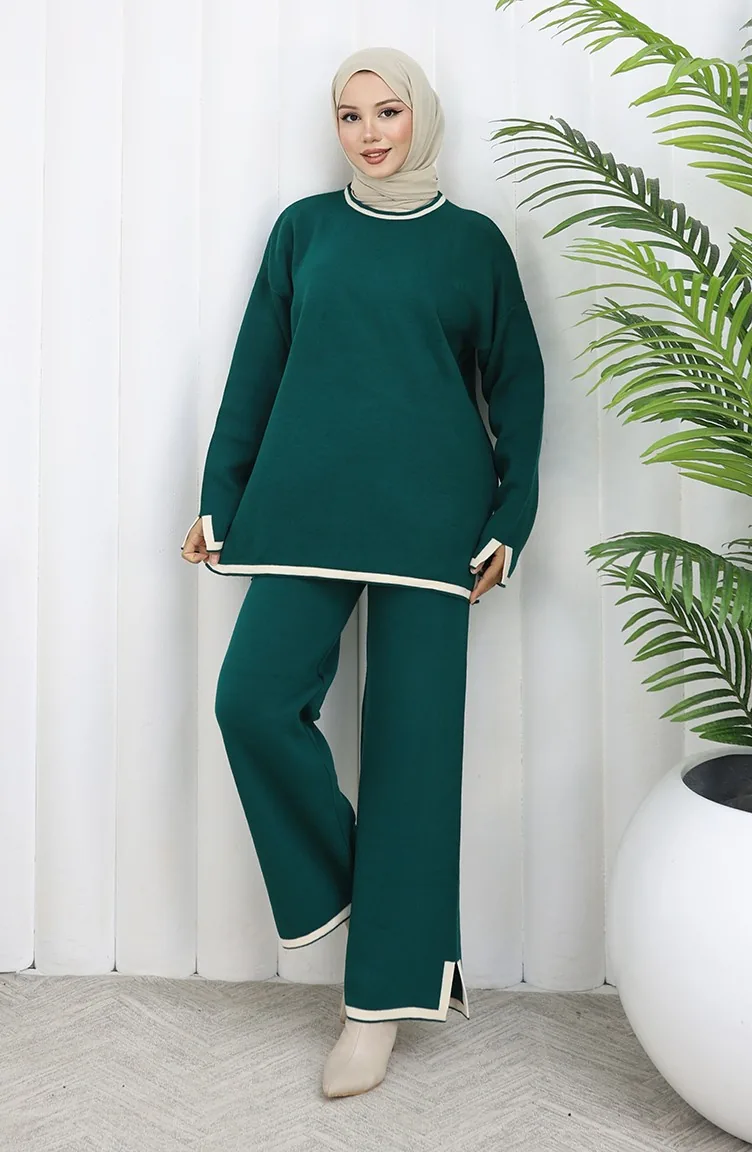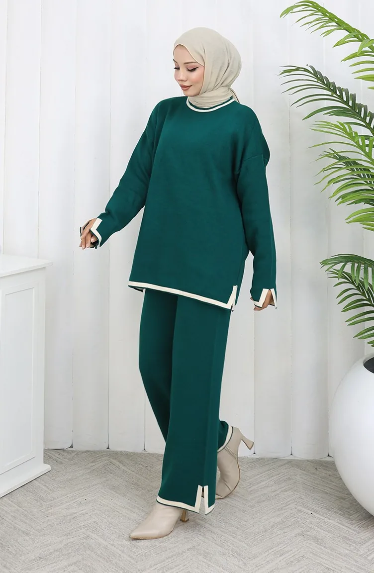 Knitwear Slit Detailed Sweater Trousers Two Piece Set 0011-06 Petrol 0011-06