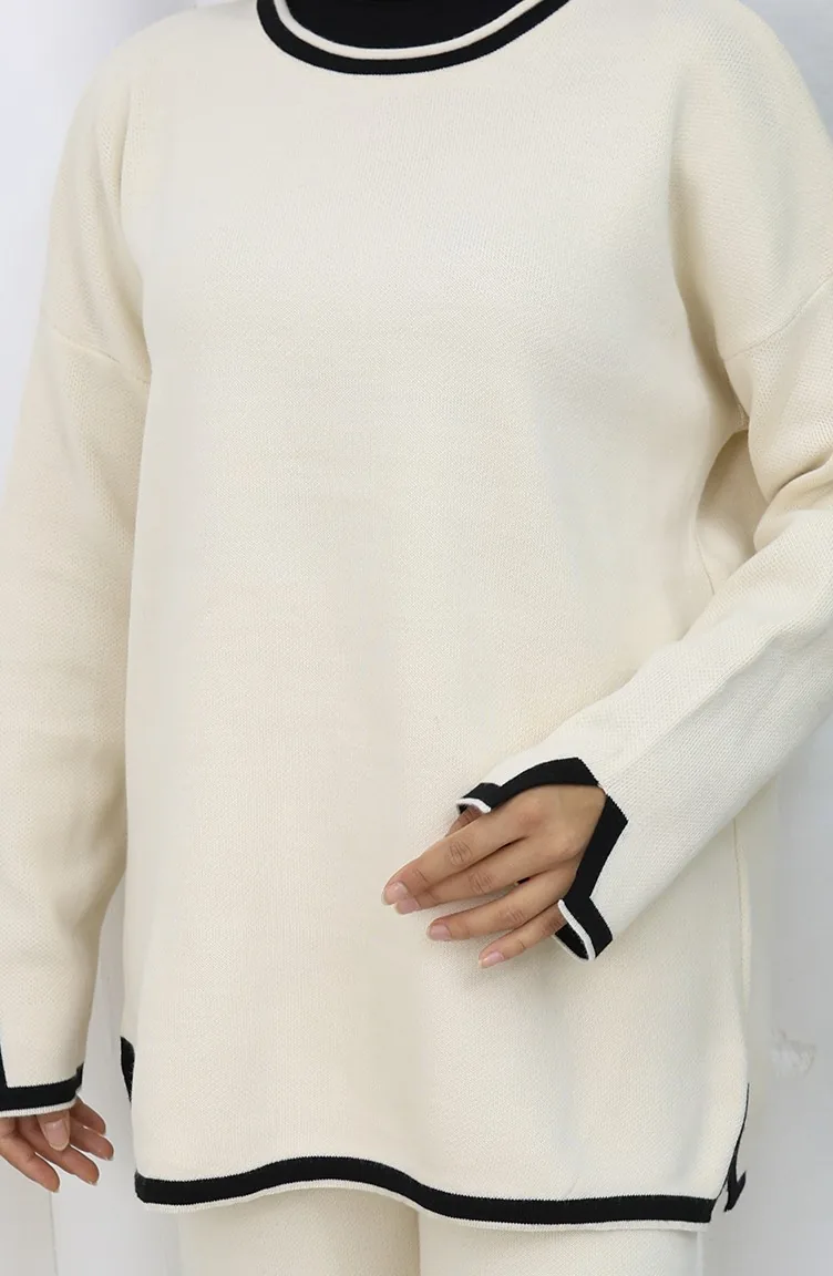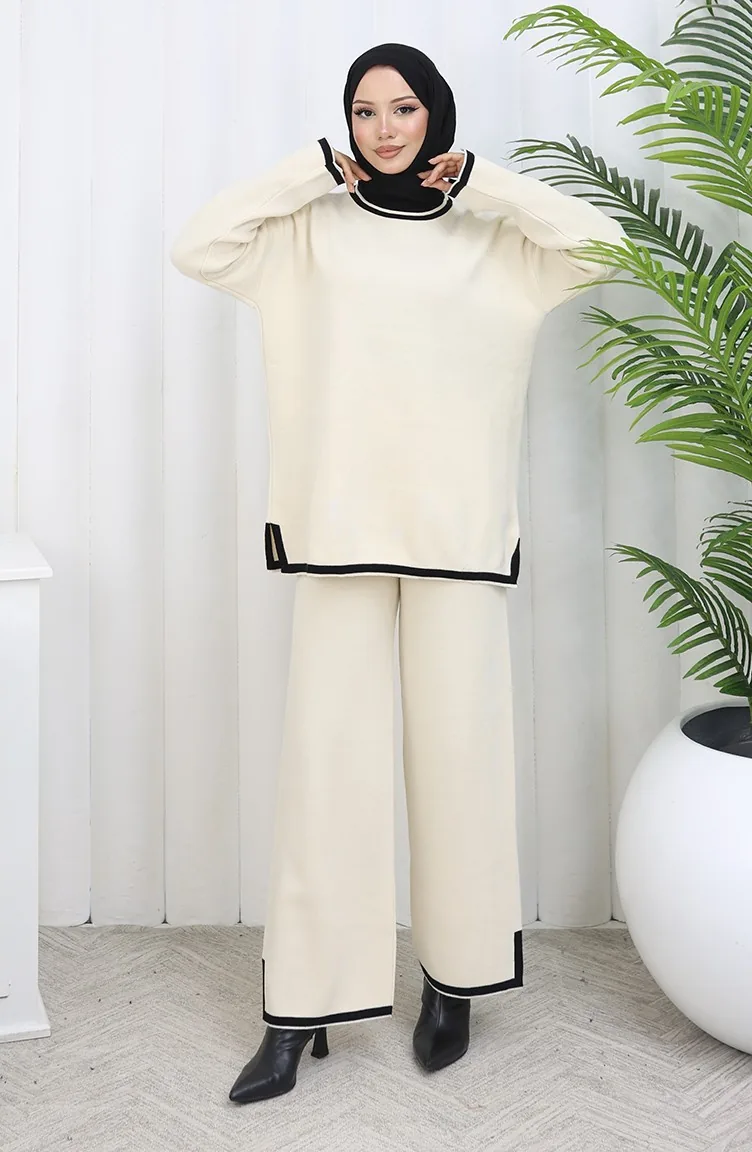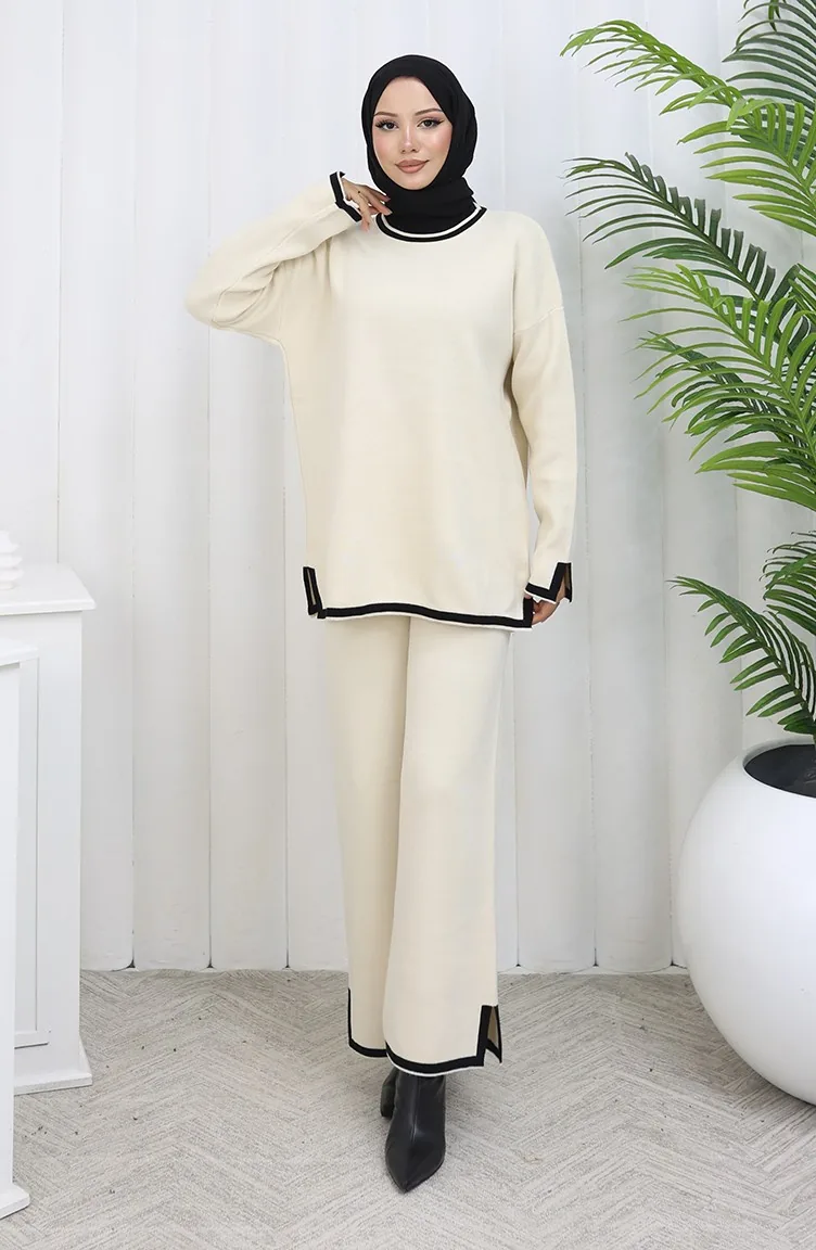Knitwear Slit Detailed Sweater Trousers Two Piece Set 0011-07 Beige 0011-07
