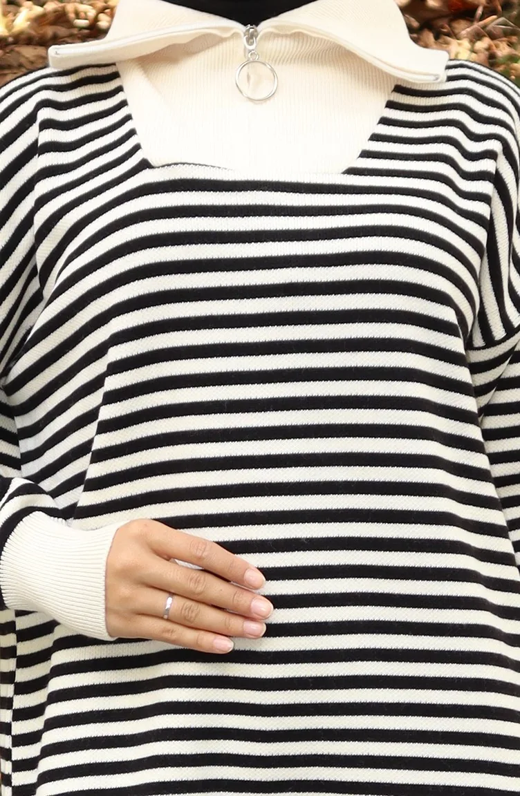 Designed by Acrylic fabric. Designed with a striped fabric. When the tunic combined with another product, you will get a nice suit. Indispensable for the winter months is the turtleneck for those who seek elegance with a simple look. Designed from thick fabric. Standard body size can be used in many sizes of body sizes.