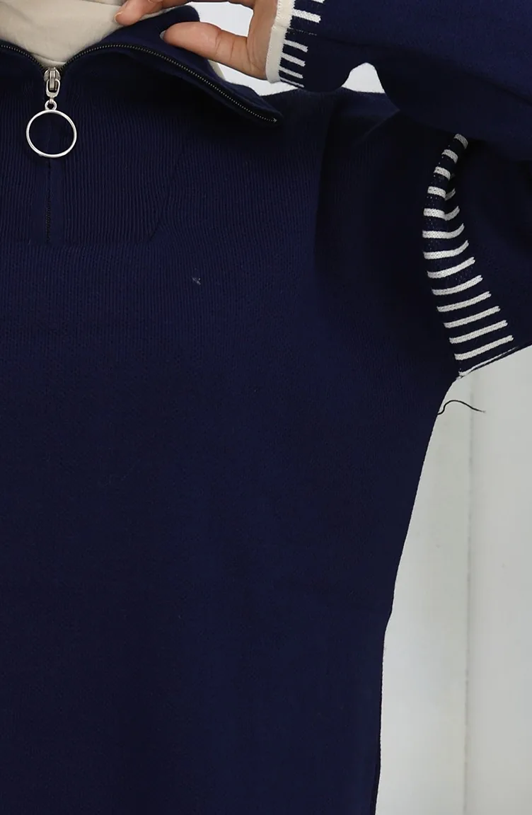 Knitwear Zipper Collar Tunic Trousers Two Piece Suit 1061-03 Navy Blue 1061-03