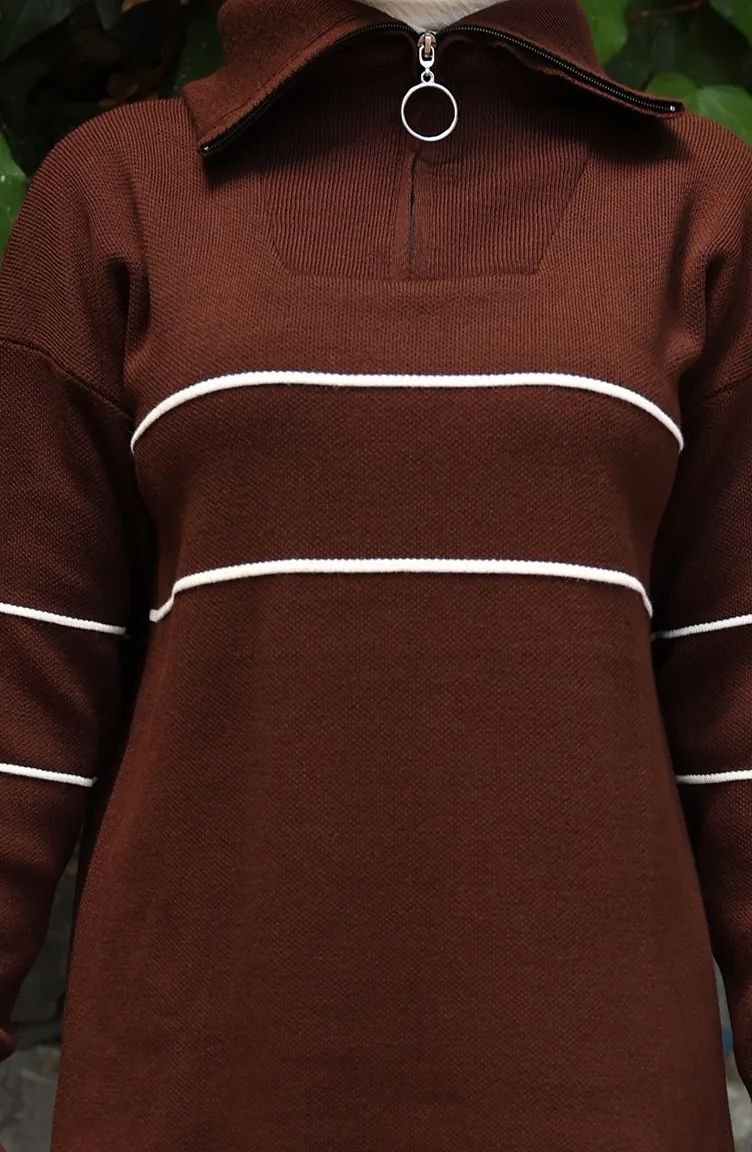 Knitwear Zippered Tunic Trousers Two Piece Suit 1050-06 Brown 1050-06