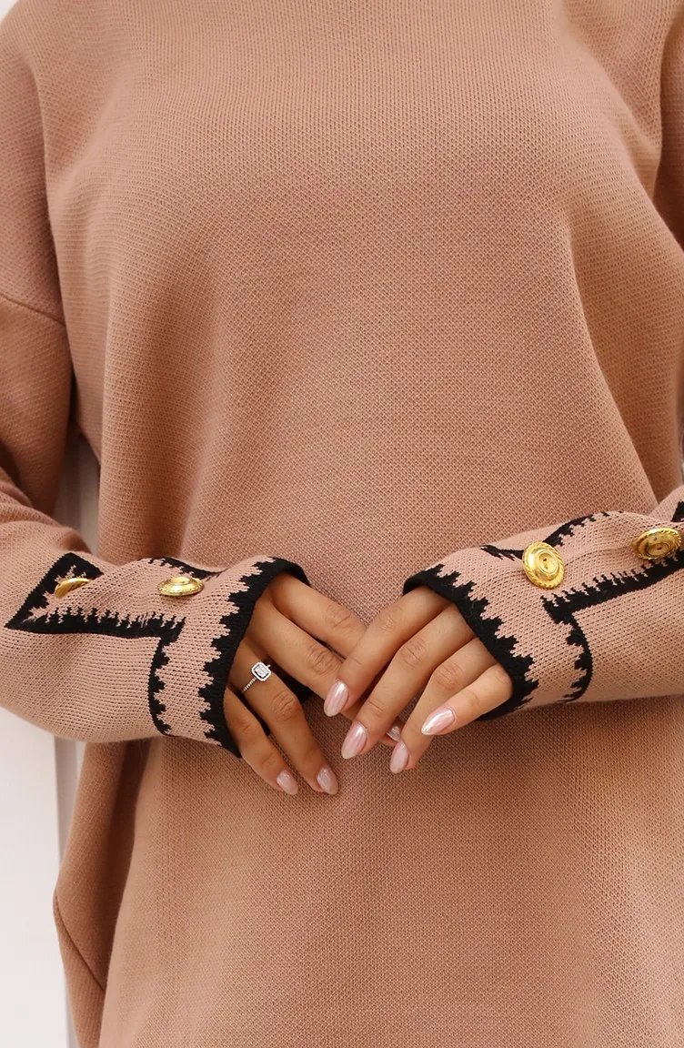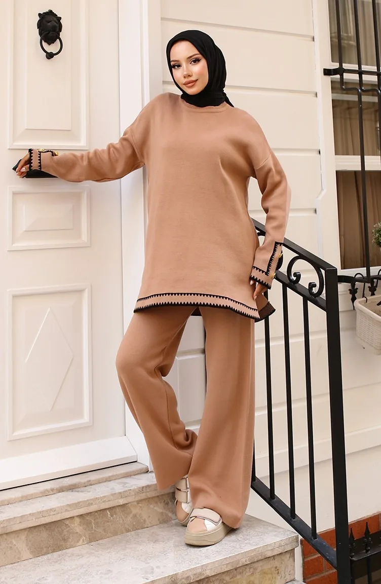 Zigzag Knitwear Set With Buttoned Sleeves 24012-02 Milk Coffee 24012-02