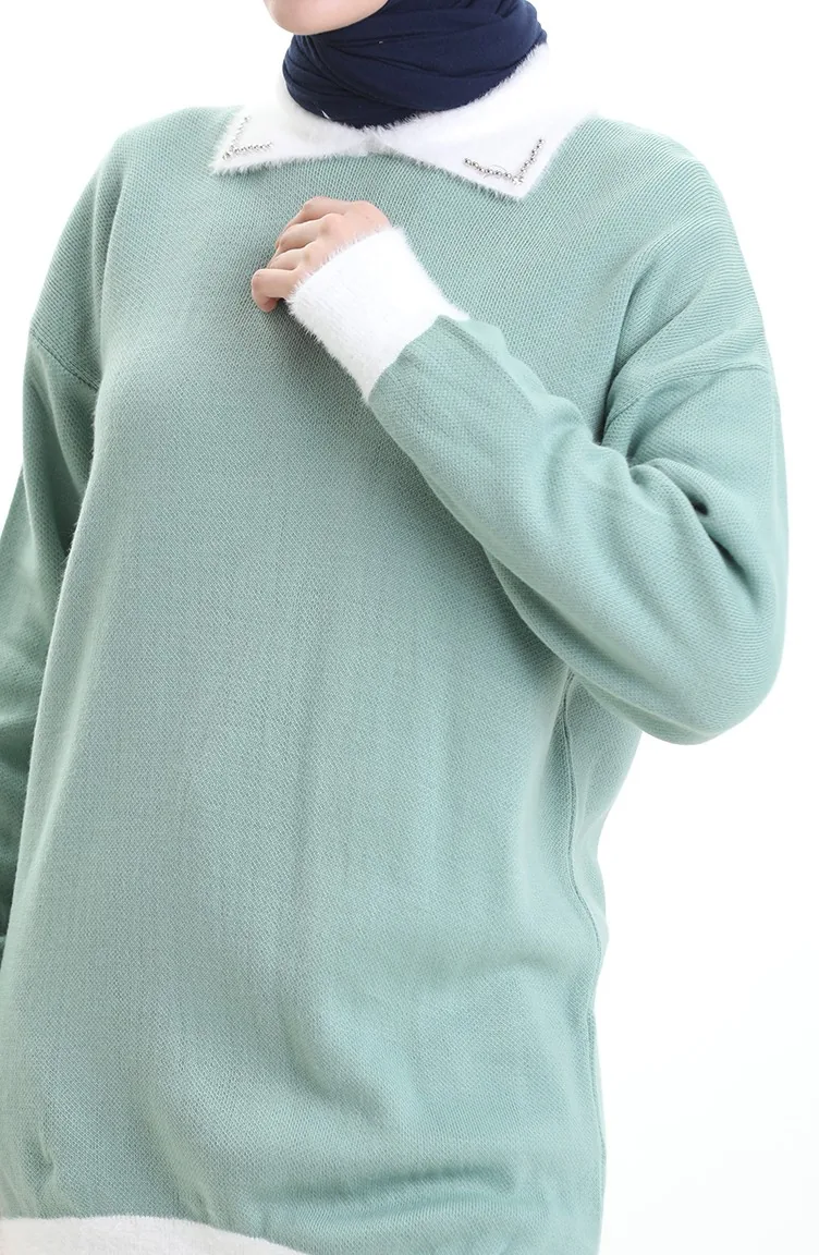 Knitted Beaded Detailed Tunic 3002-11 Almond Green 3002-11