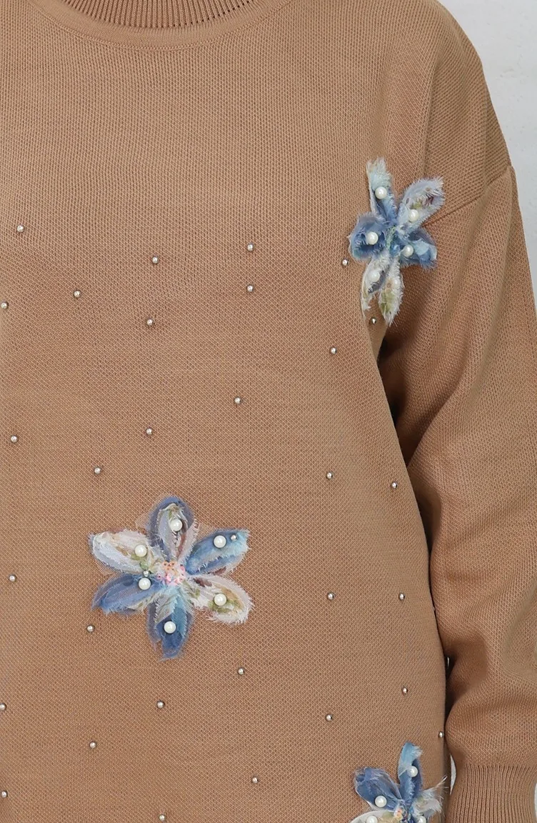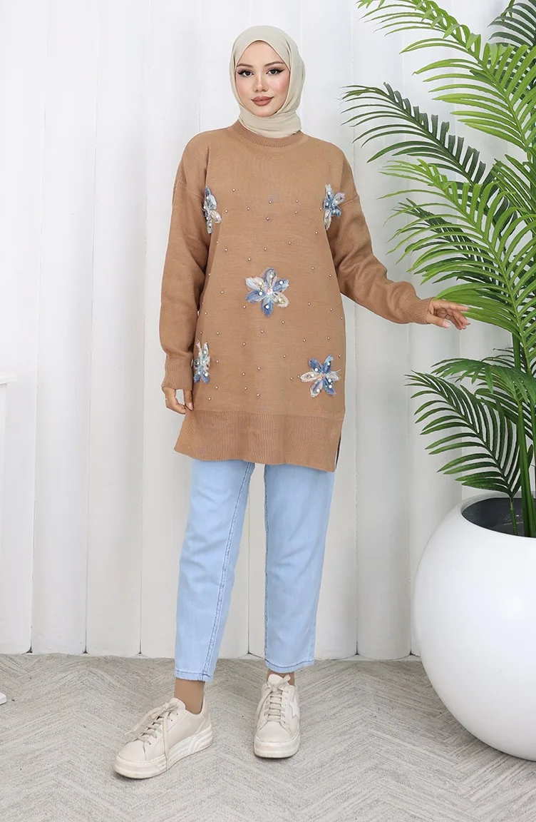 Knitwear Garnished Tunic 3010-08 Milk Coffee 3010-08