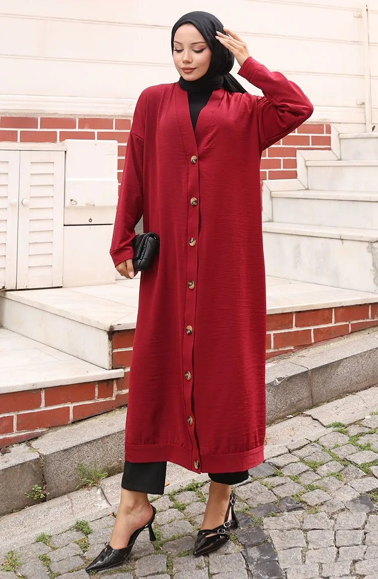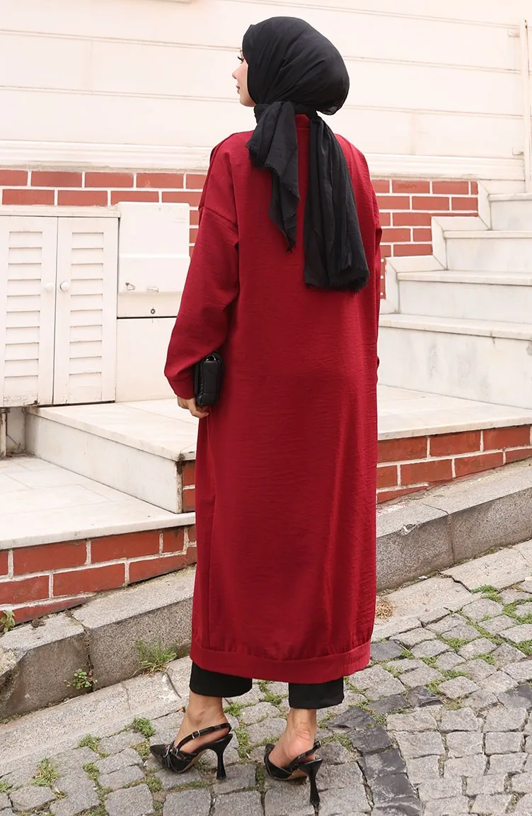 Buttoned Long Tunic 0096-03 Claret Red 0096-03