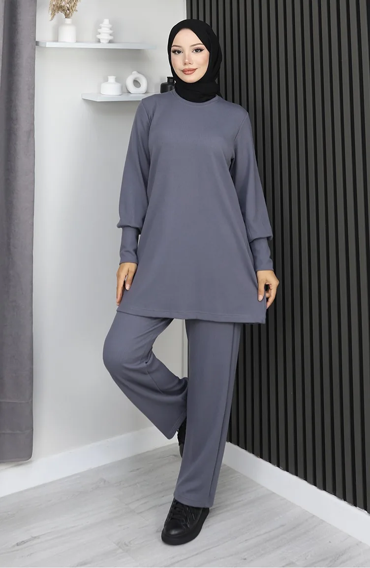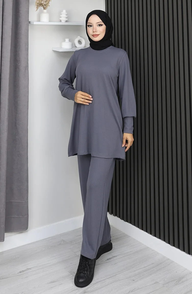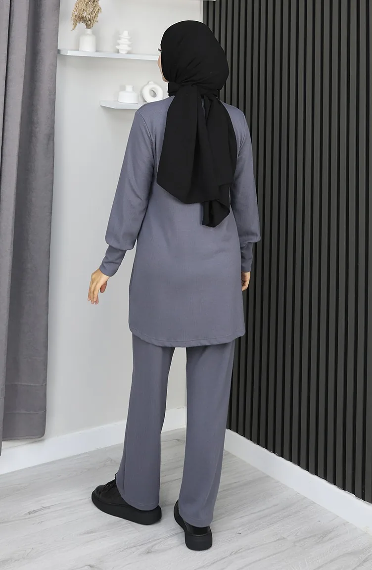 Crepe Fabric Tunic Trousers Two Piece Suit 20024A-01 Gray 20024A-01