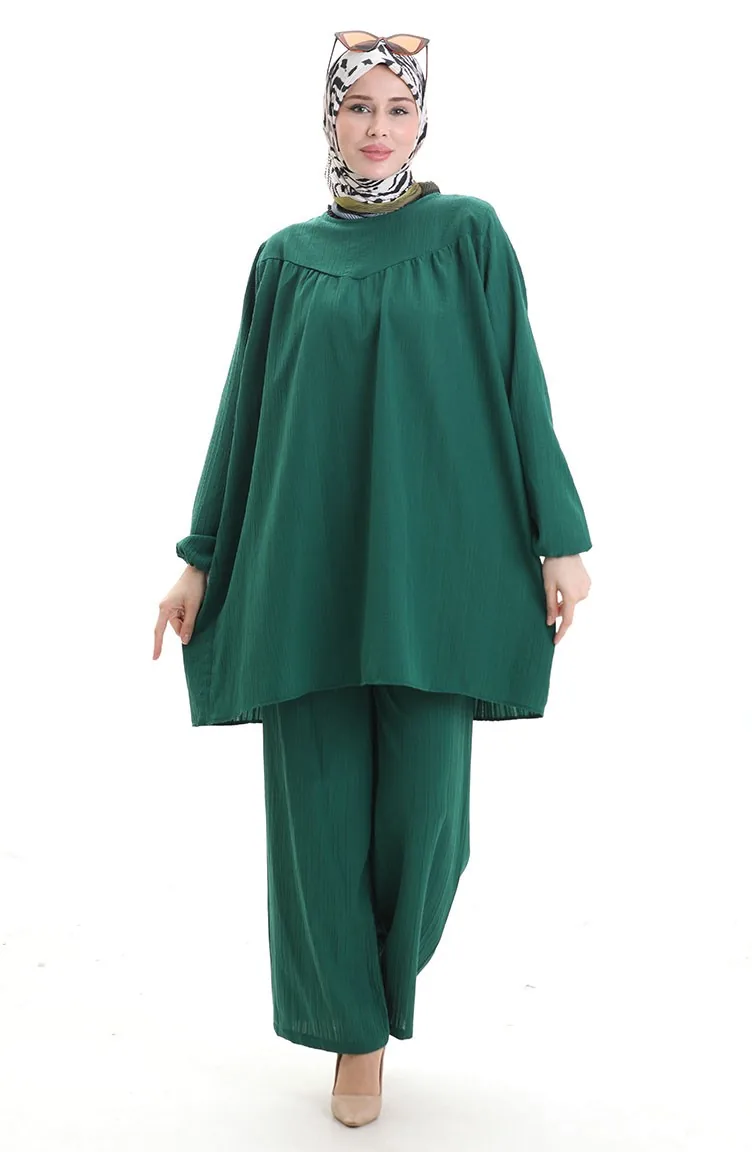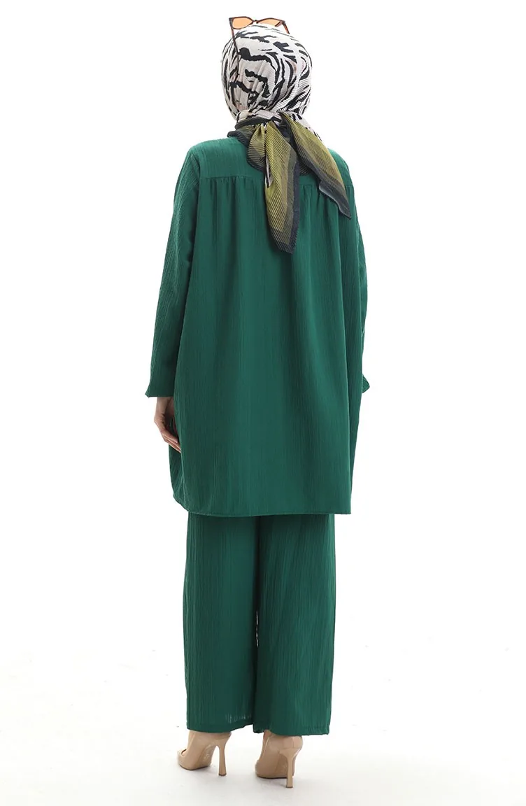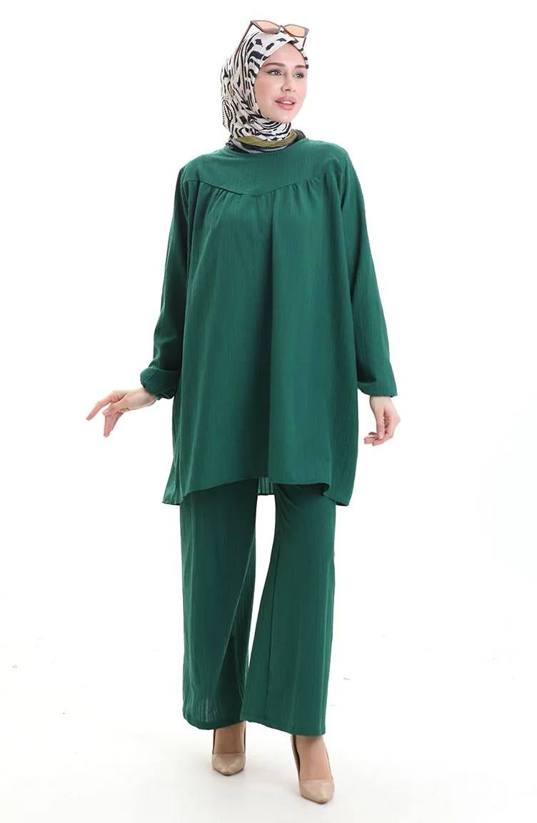 Elastic Sleeve Tunic Trousers Two Piece Set 0103-03 Emerald Green 0103-03