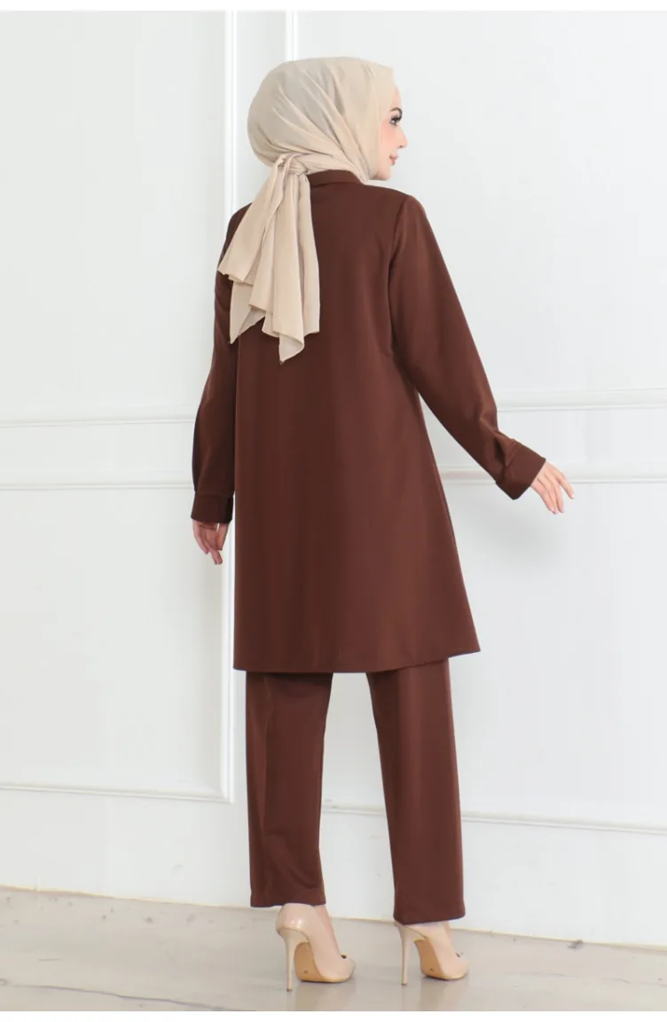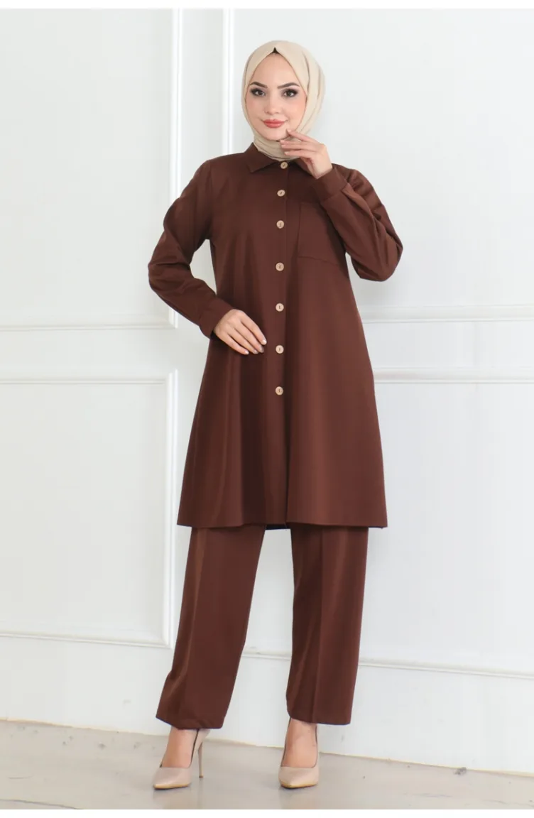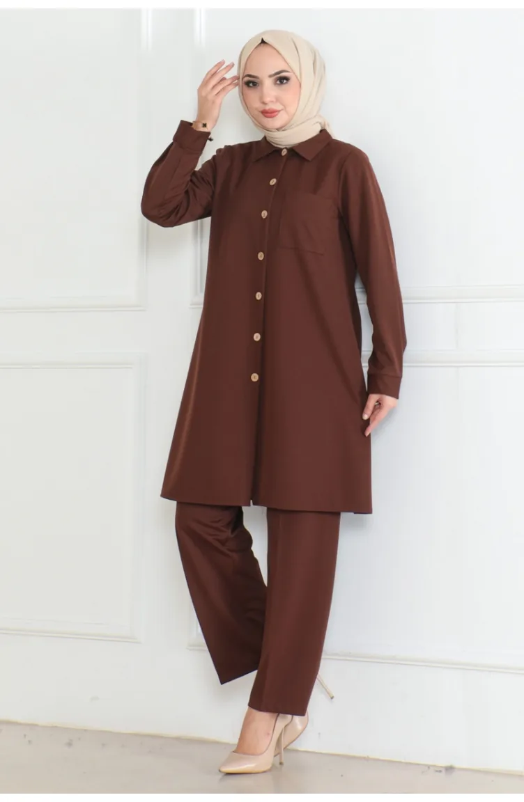 Lues Pocket Detailed Shirt Suit 108-02 Brown 108-02