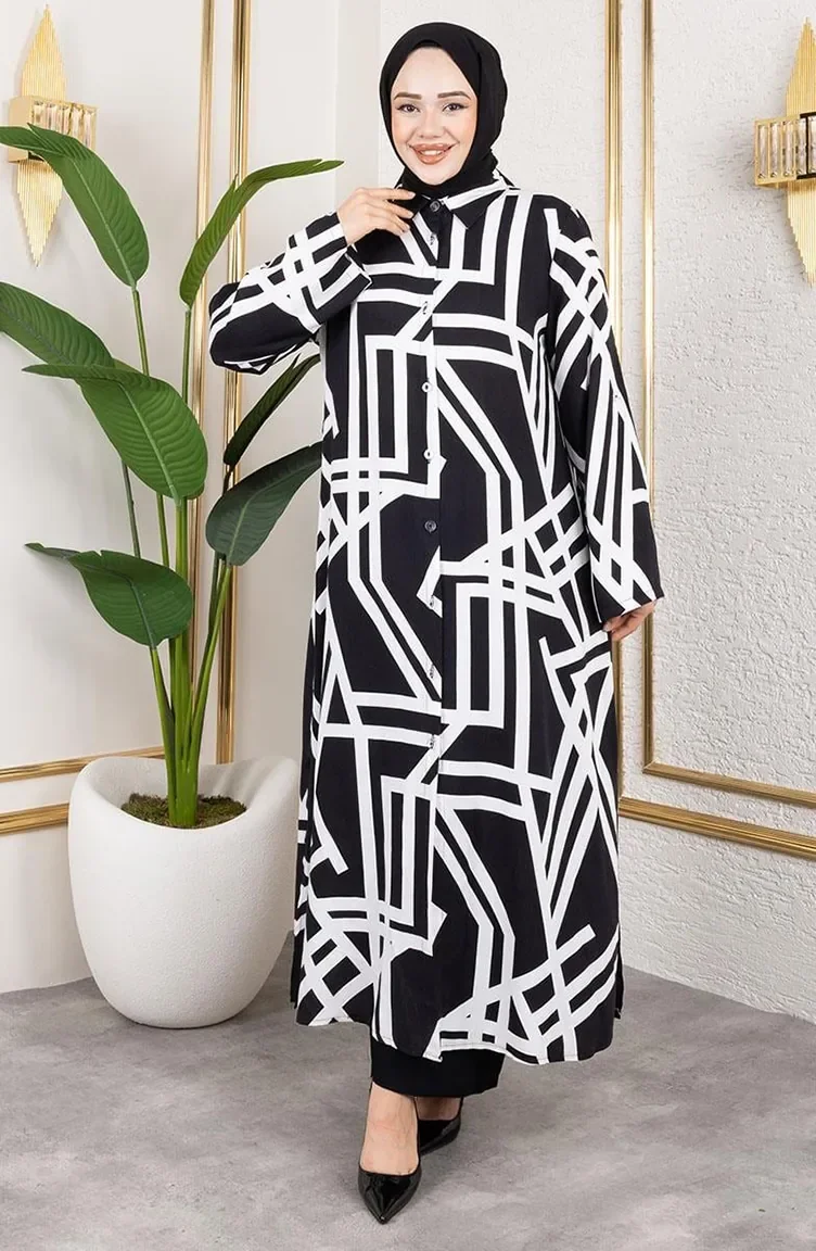 Black color is used. Viscose is a type of synthetic fabric and is convenient to use. Designed with patterned fabric. Buttons have been used to make it easy to use. Suitable for 4 seasons. Plus size option available.