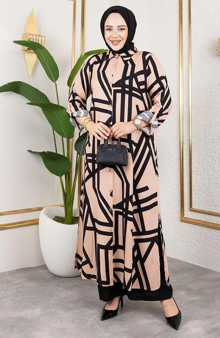 Patterned Viscose Suit 0337-04 Mink Black 0337-04
