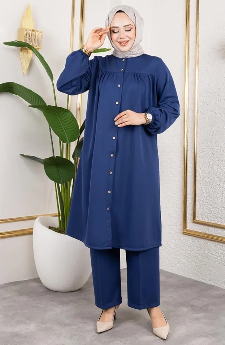 Pleated Hijab Suit 2061-02 Indigo 2061-02