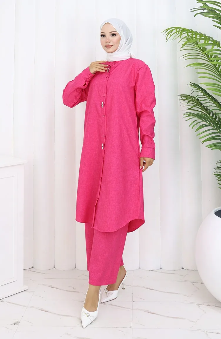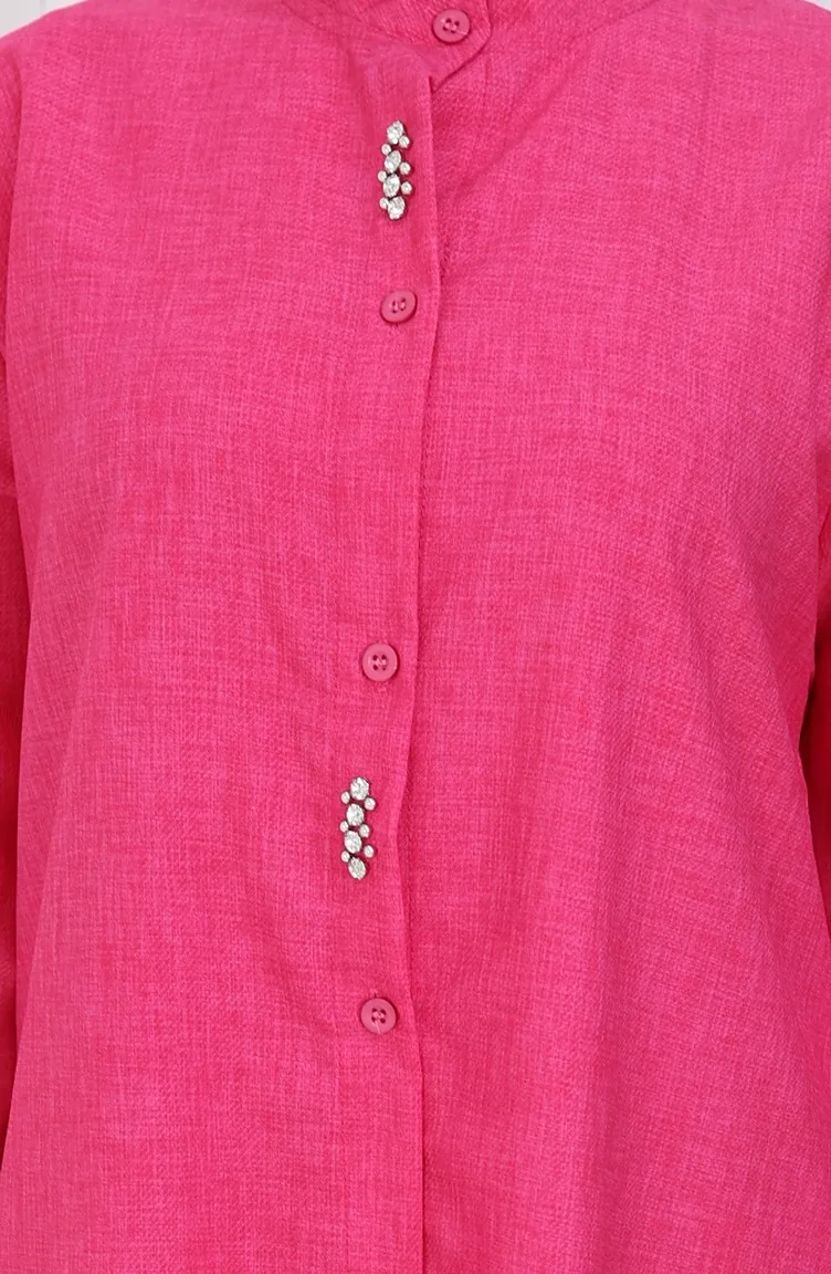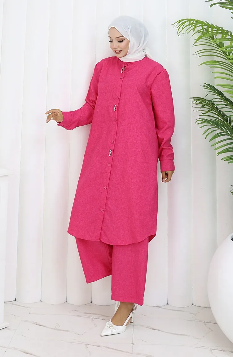 Stoned Tunic Trousers Two Piece Suit 2090-01 Fuchsia 2090-01