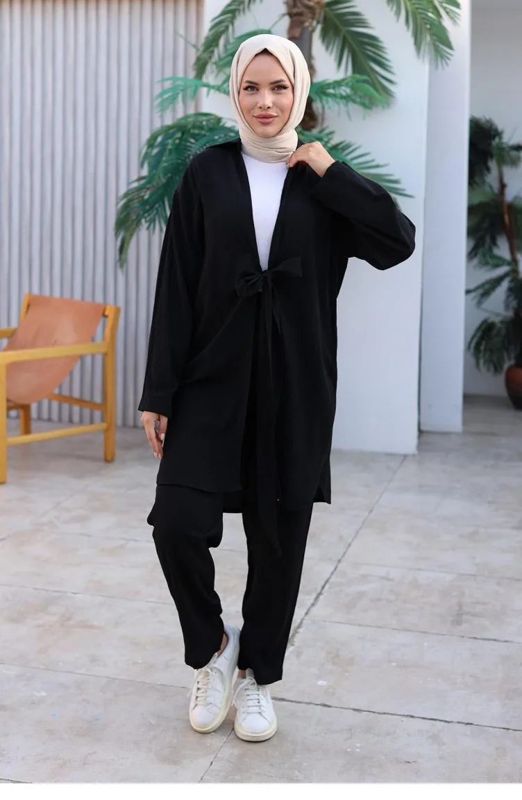 Tie Detail Kimono Suit Black 1225 617