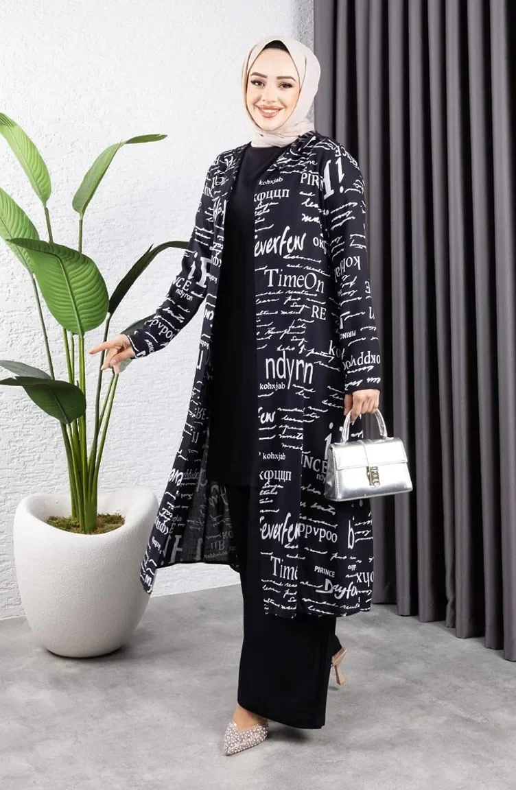 Written 3-Piece Hijab Suit 4012-10 Black 4012-10