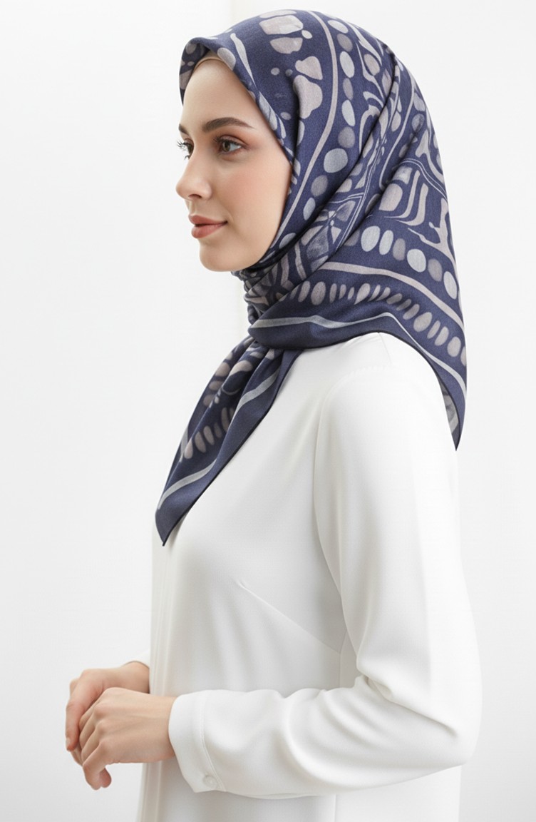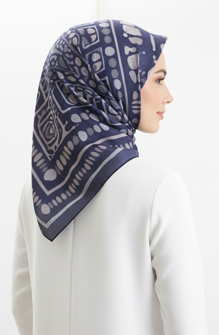 Amber Patterned Scarf 70326-07 Navy Blue Mink 70326-07