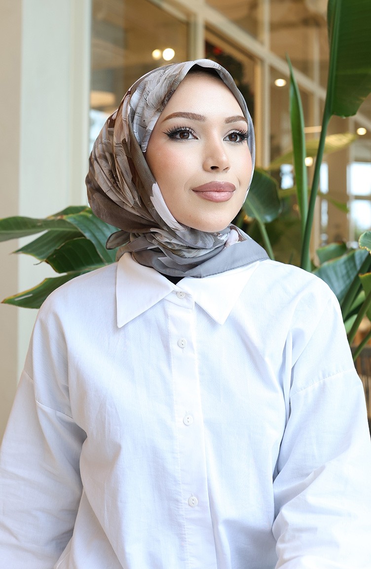 Floral Patterned Cotton Cocoon Scarf 70333-02 Mink Khaki 70333-02