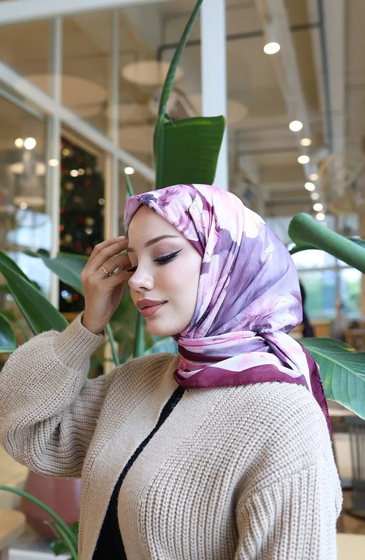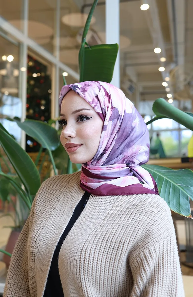 Floral Patterned Cotton Cocoon Scarf 70333-13 Cherry Pink 70333-13