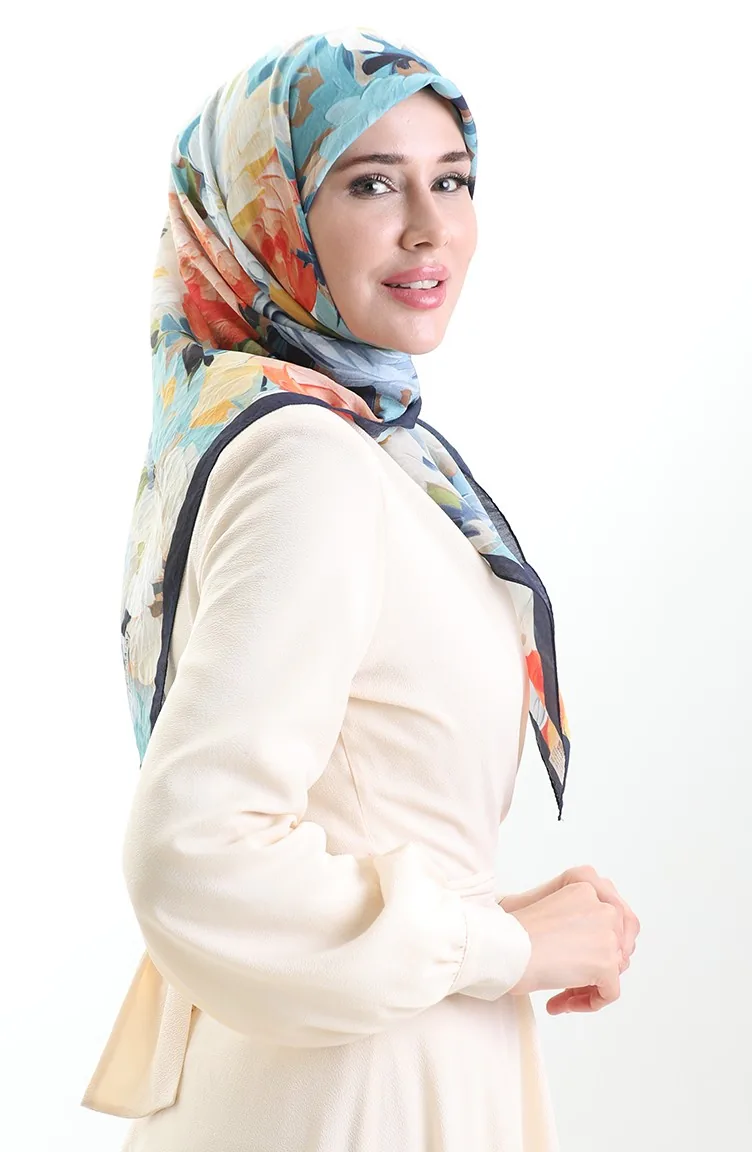 Karaca Floral Patterned Natural Fiber Scarf 82017-07 Navy Blue Indigo 82017-07