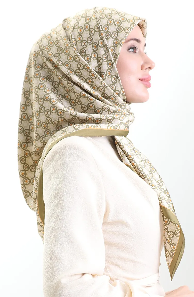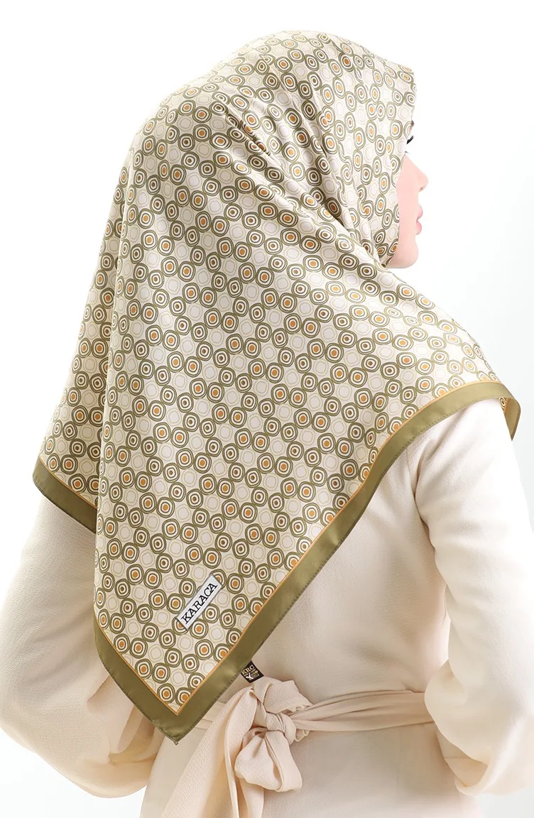 Karaca Geometric Patterned Rayon Scarf 82020-10 Green Cream 82020-10