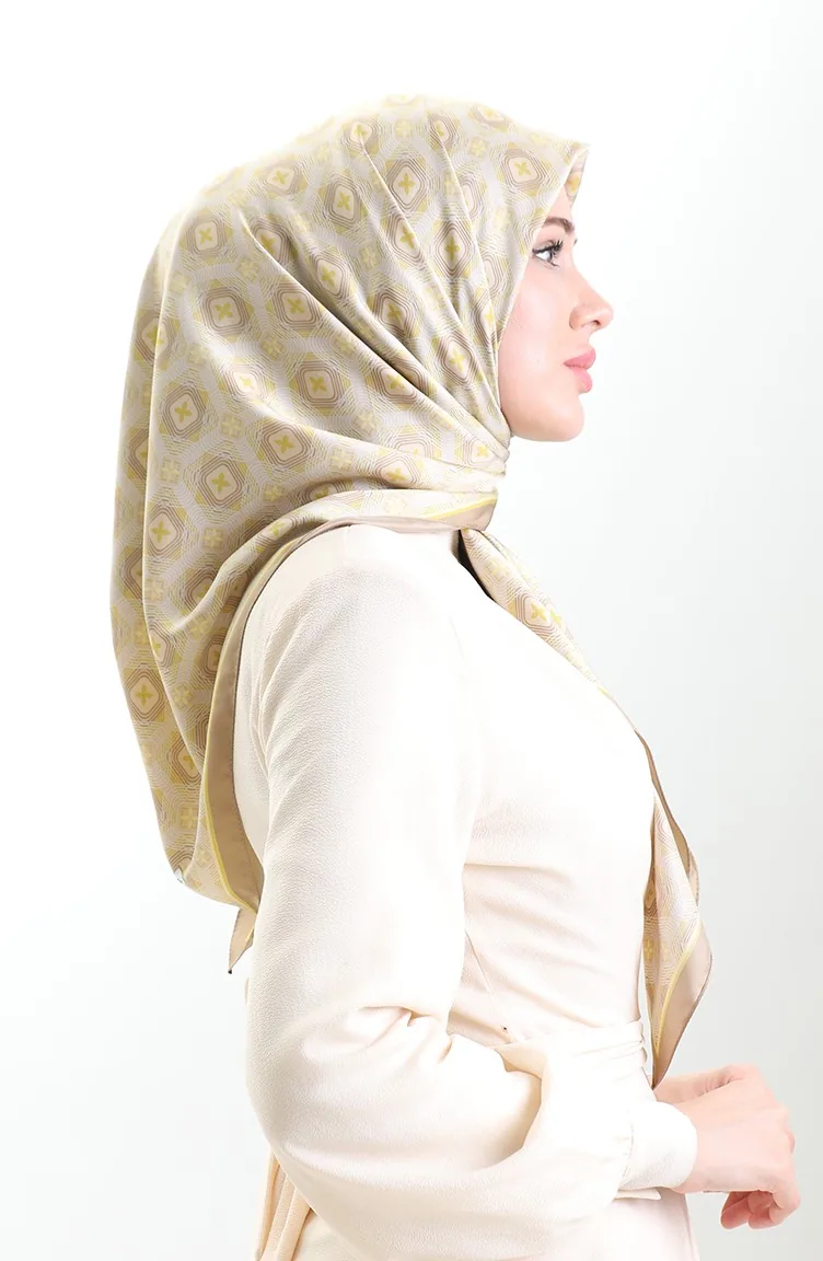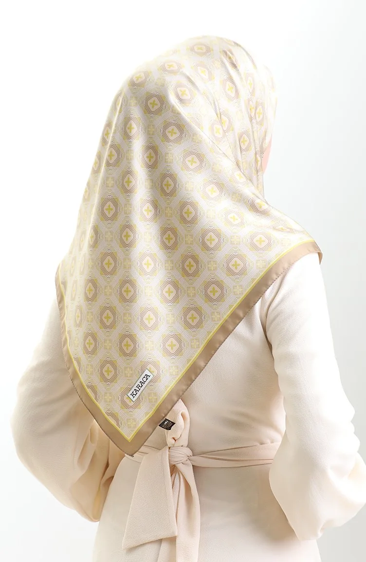 Karaca Geometric Patterned Rayon Scarf 82021-09 Mink Yellow 82021-09