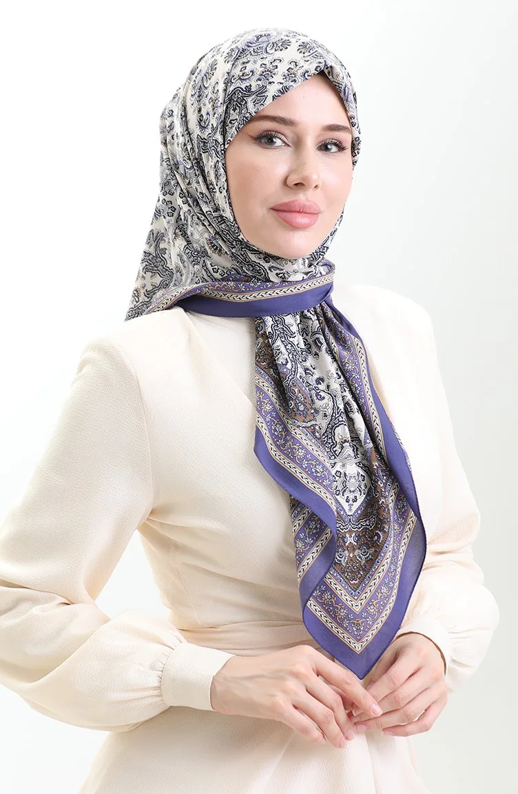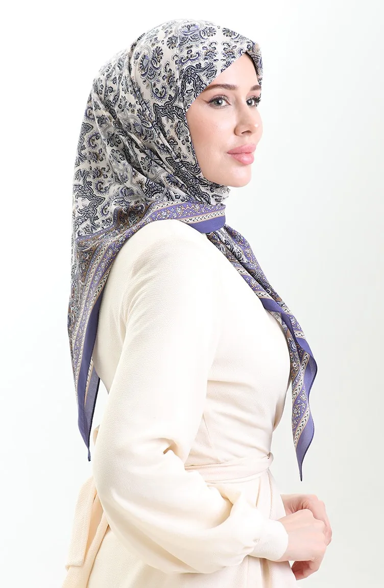 Karaca Patterned Cupra Scarf 81088-07 Purple Cream 81088-07