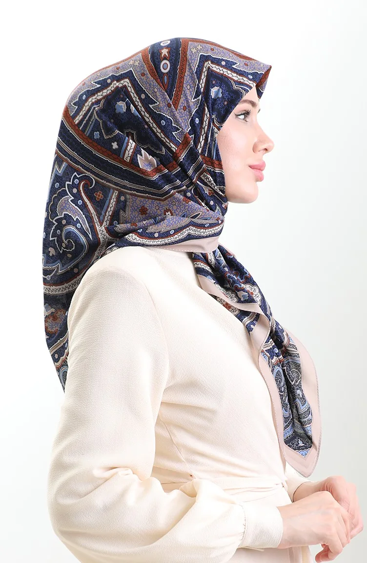 Karaca Patterned Cupra Scarf 82013-01 Mink Navy Blue 82013-01