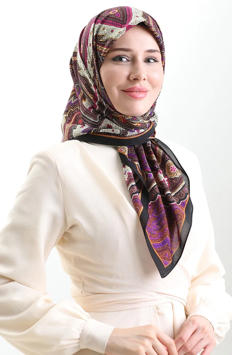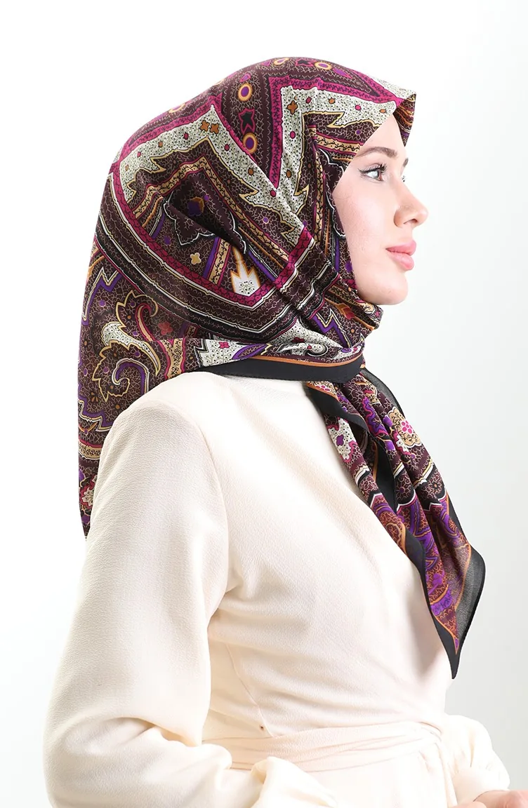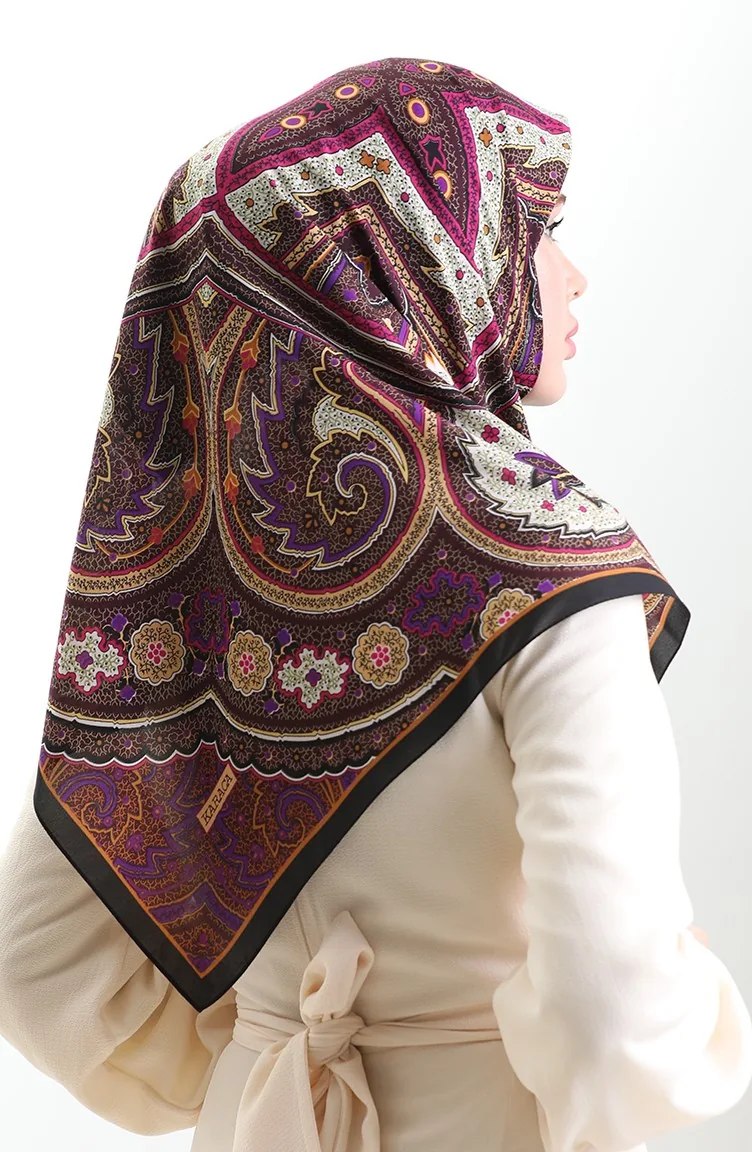 Karaca Patterned Cupra Scarf 82013-03 Black Purple 82013-03