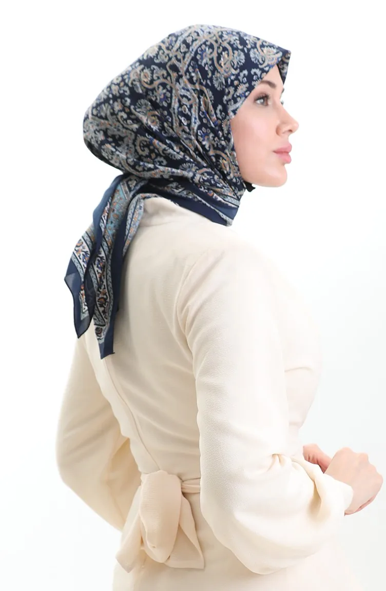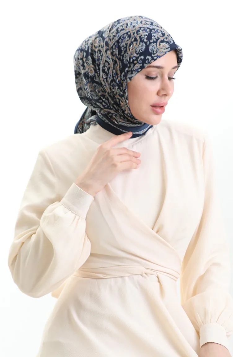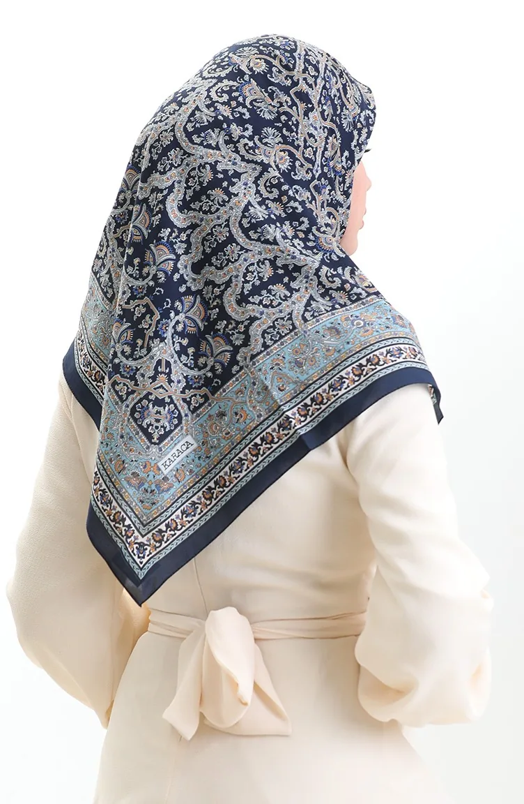 Karaca Patterned Cupra Scarf 82014-10 Navy Blue 82014-10