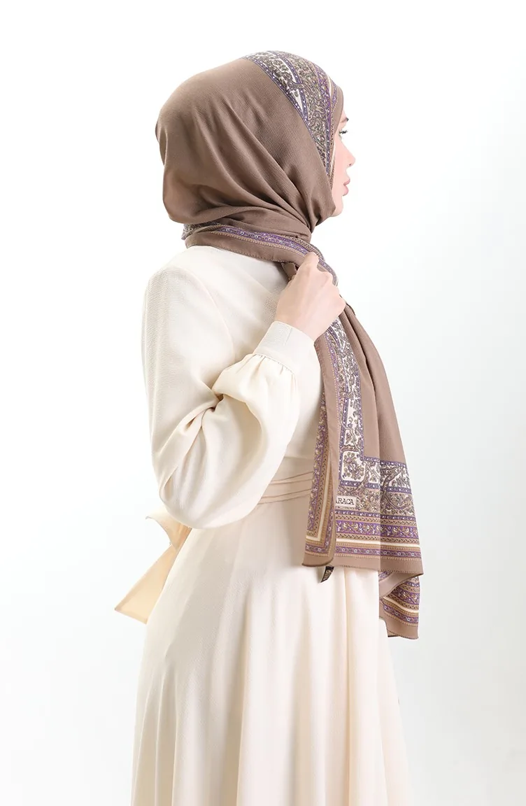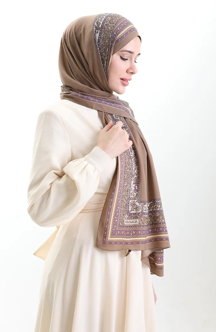 Karaca Patterned Mio Shawl 82012-04 Milk Coffee Purple 82012-04