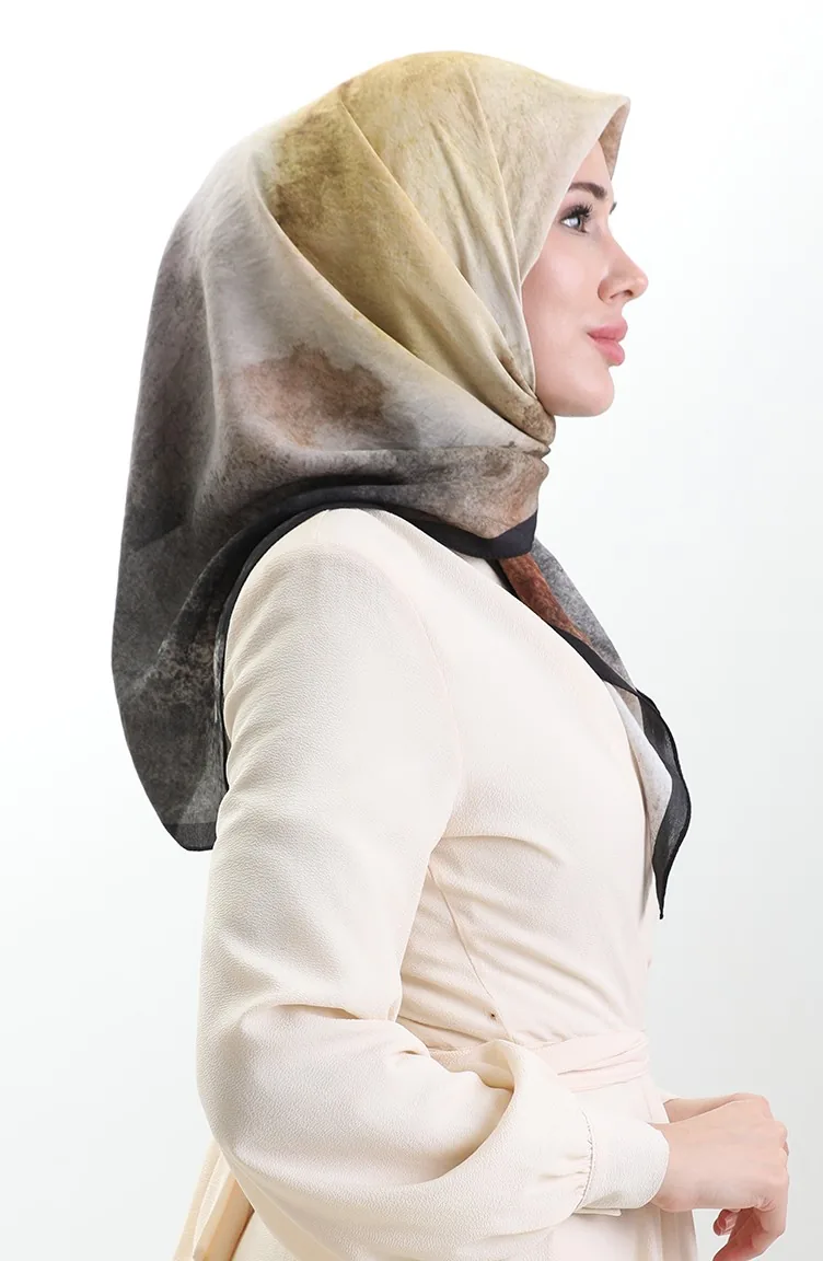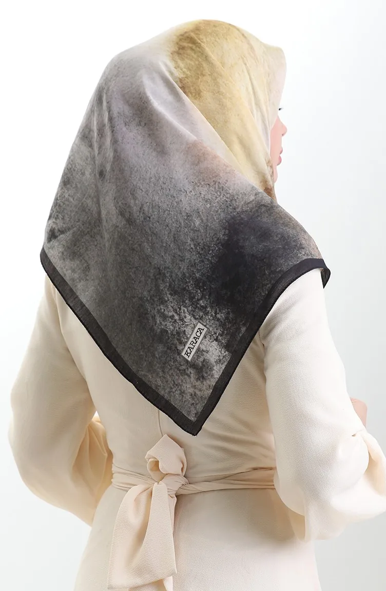 Karaca Patterned Natural Fiber Scarf 82018-12 Black Mustard 82018-12