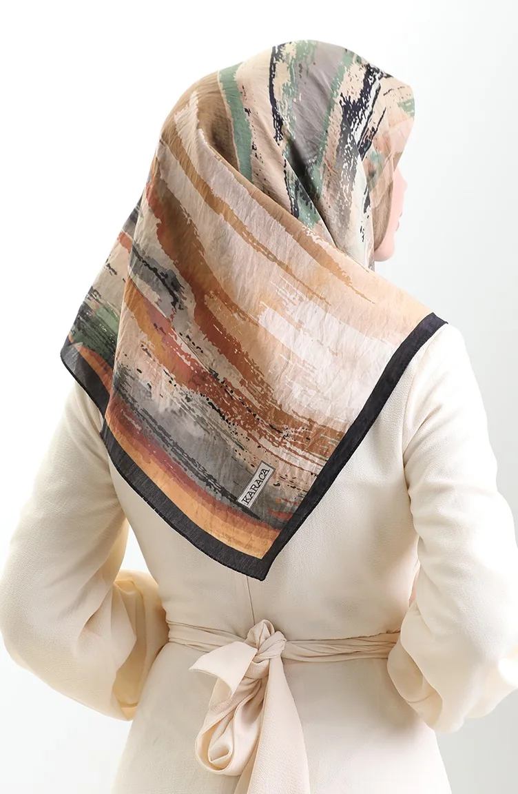 Karaca Patterned Natural Fiber Scarf 82019-07 Black Brown 82019-07