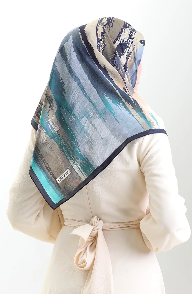 Karaca Patterned Natural Fiber Scarf 82019-08 Navy Blue Indigo 82019-08