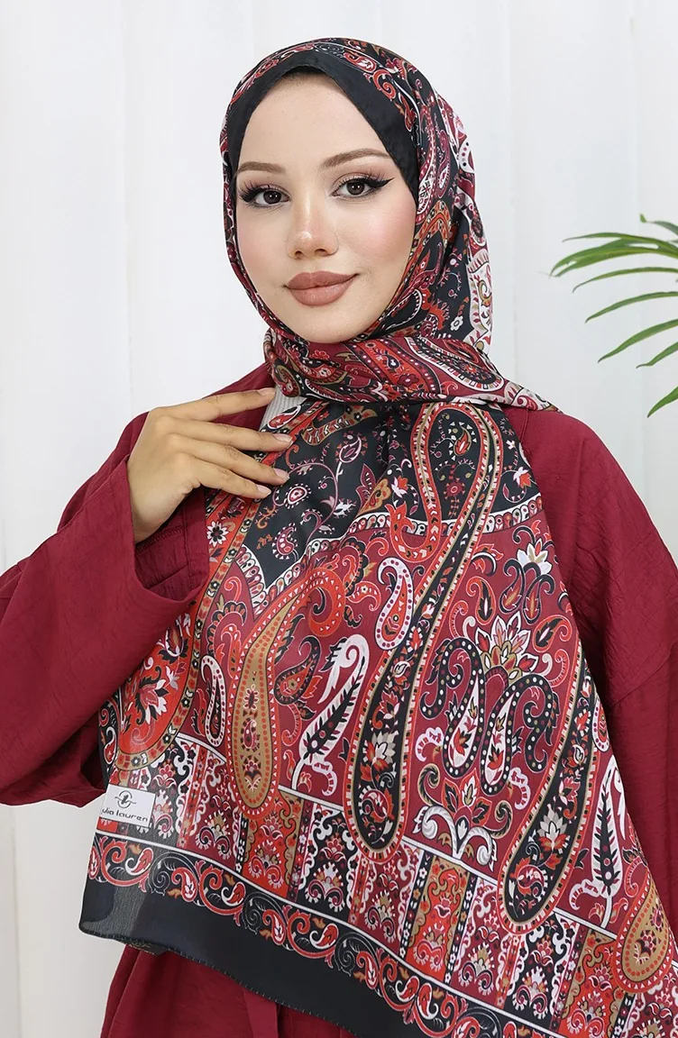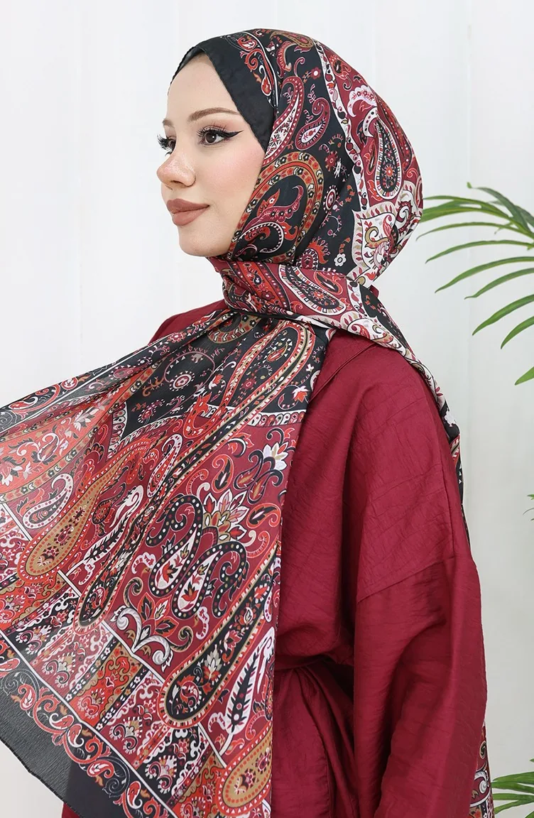 Etnik Desen Janjan Şal 70306-12 Siyah Bordo 70306-12