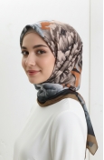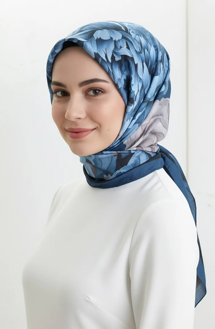 Floral Patterned Scarf 1014-02 Navy Blue 1014-02