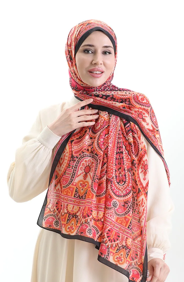 Karaca Cotton Shawl 82007-08 Black Orange 82007-08