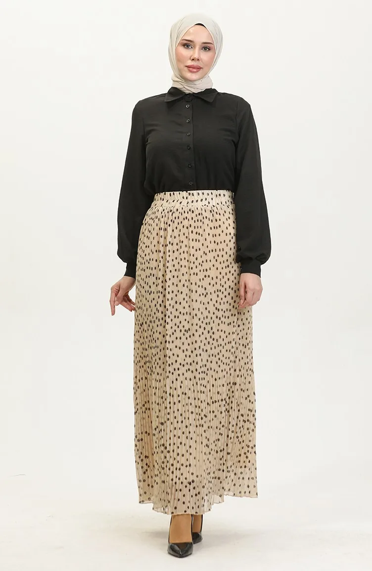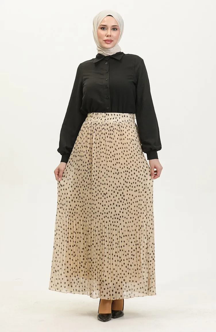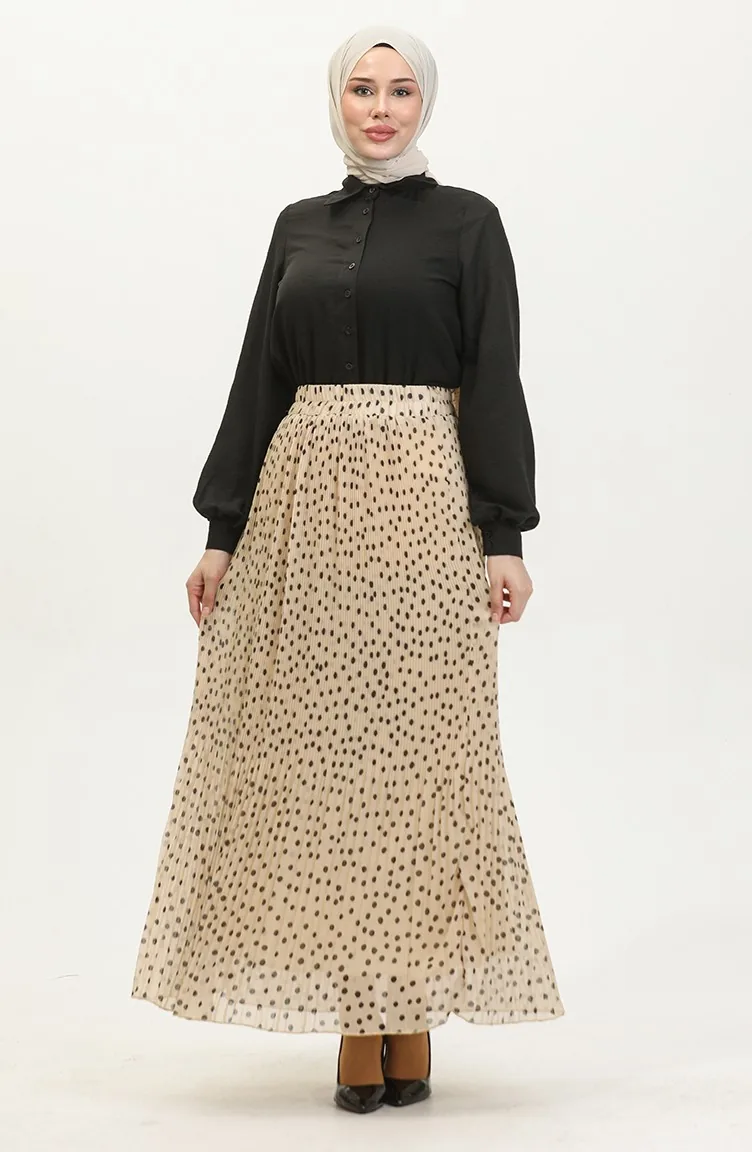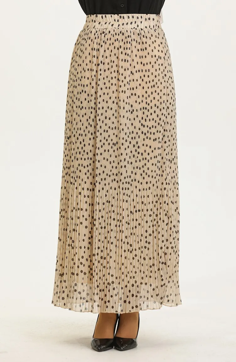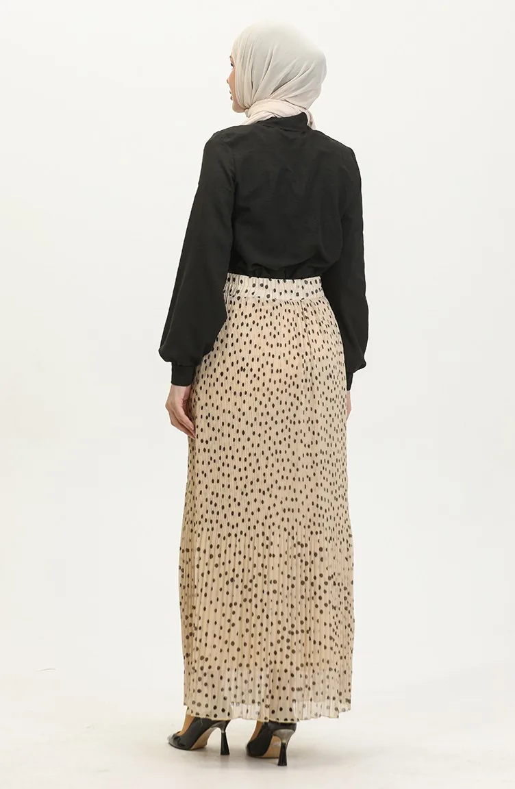 Pleated Skirt 0139-03 Beige Black 0139-03